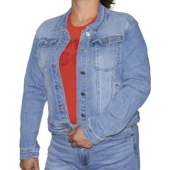 Hagyományos karcsúsított fazonú női farmerdzseki.