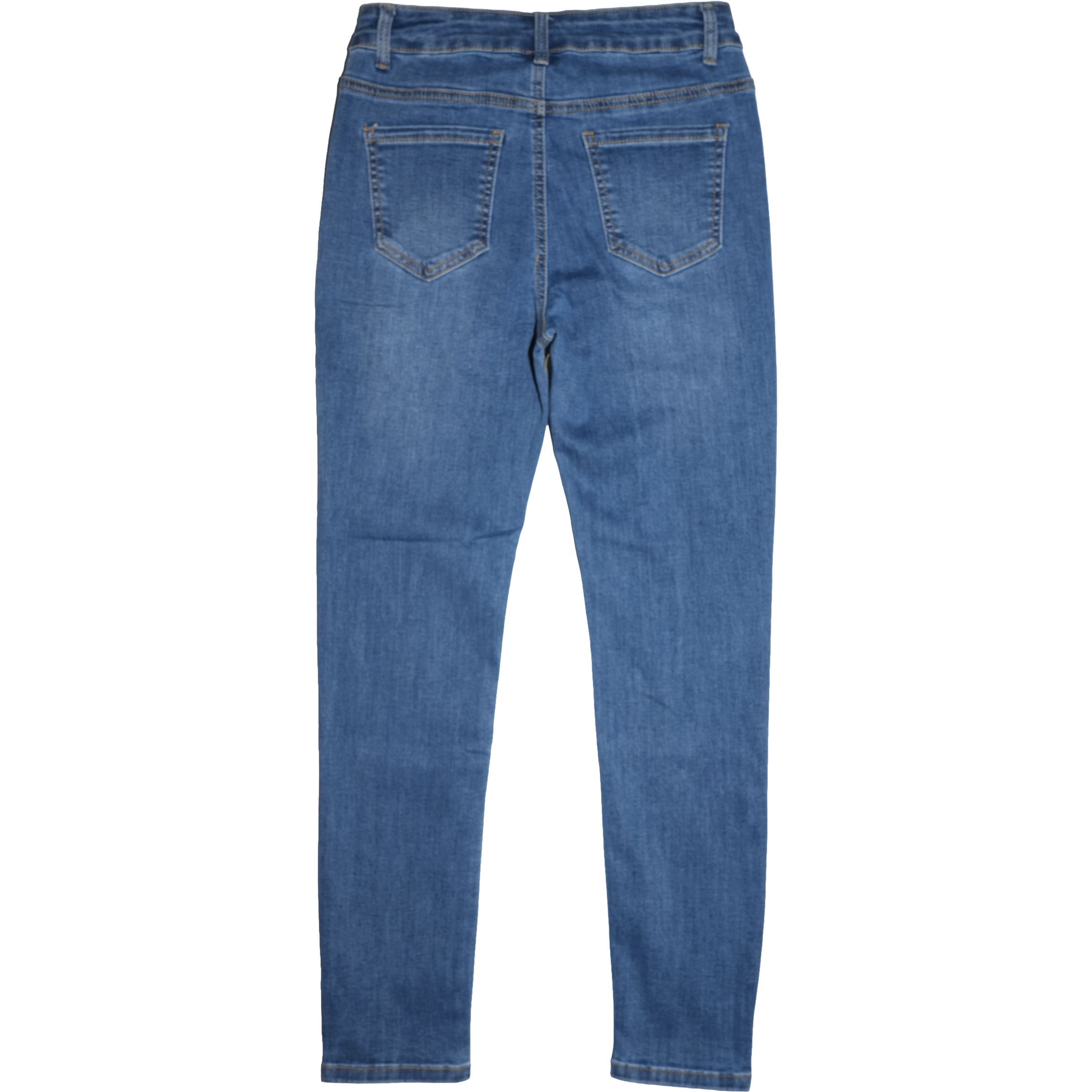 Különleges kevert-szálas alapanyagból készült szűk szárú klasszikus középkék színű női farmernadrág.