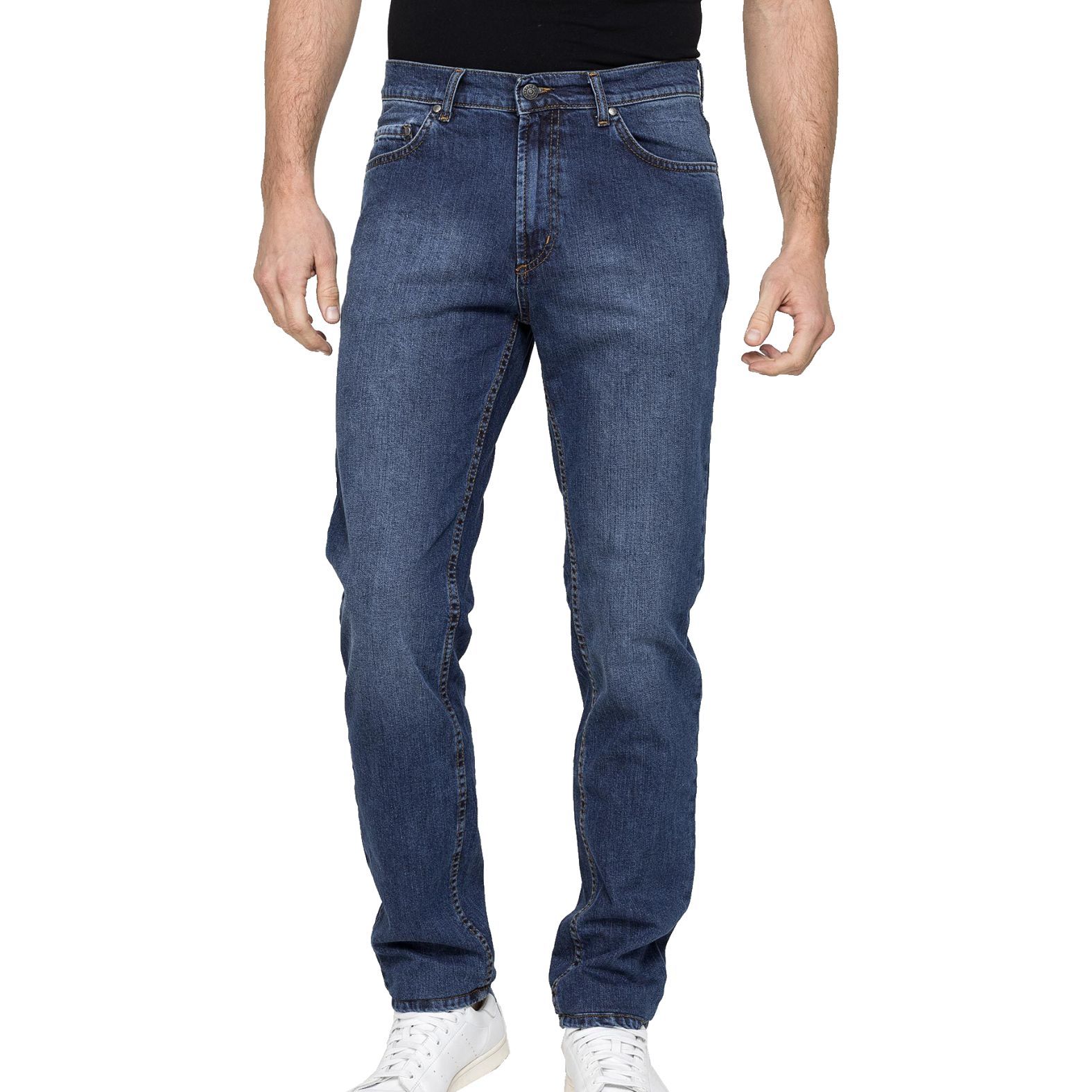 A Carrera® Jeans Mod. 700 Mid In Stretch Denim 13 oz. 7000921S071 egy klasszikus olasz stílusú farmernadrág középkék rodeó koptatással.
