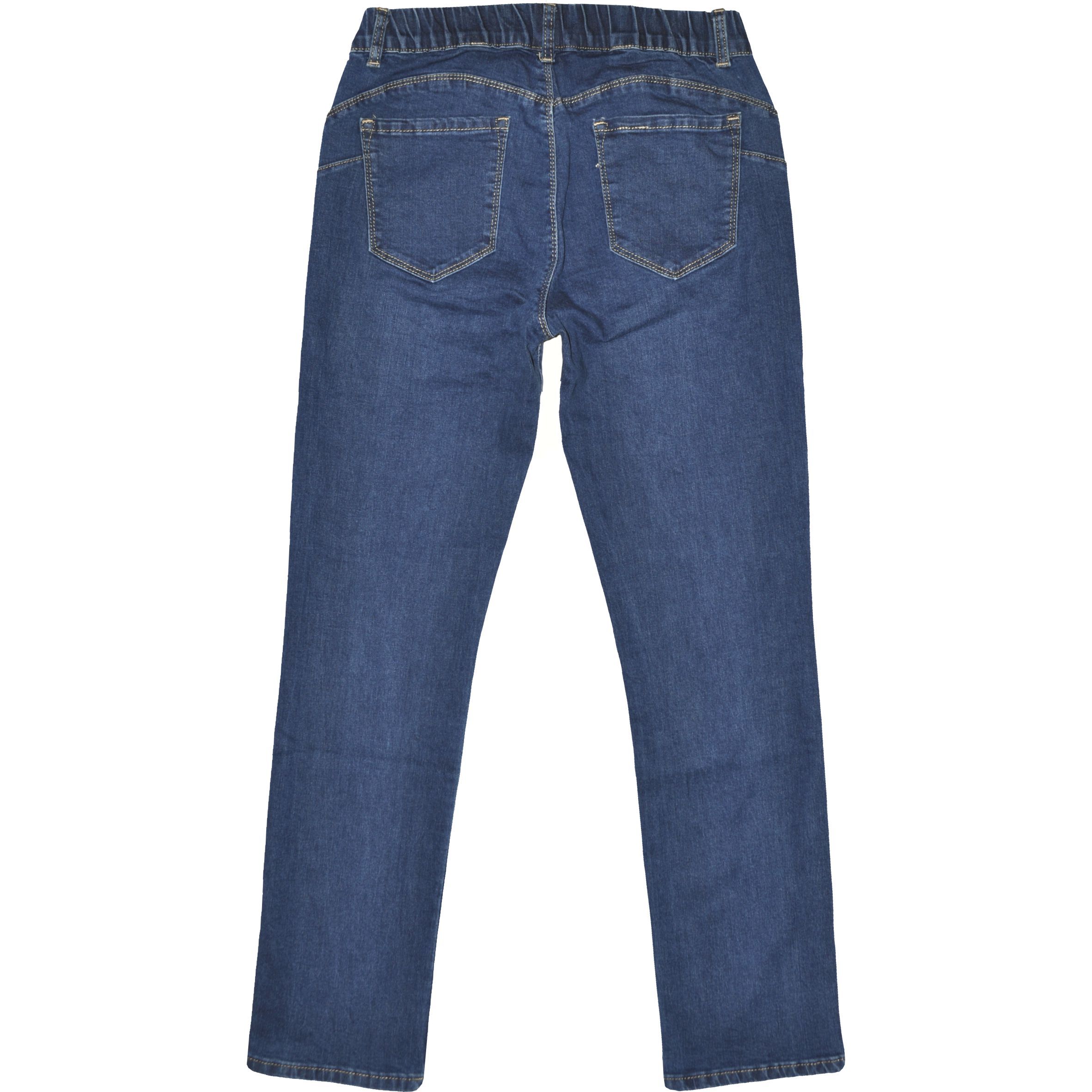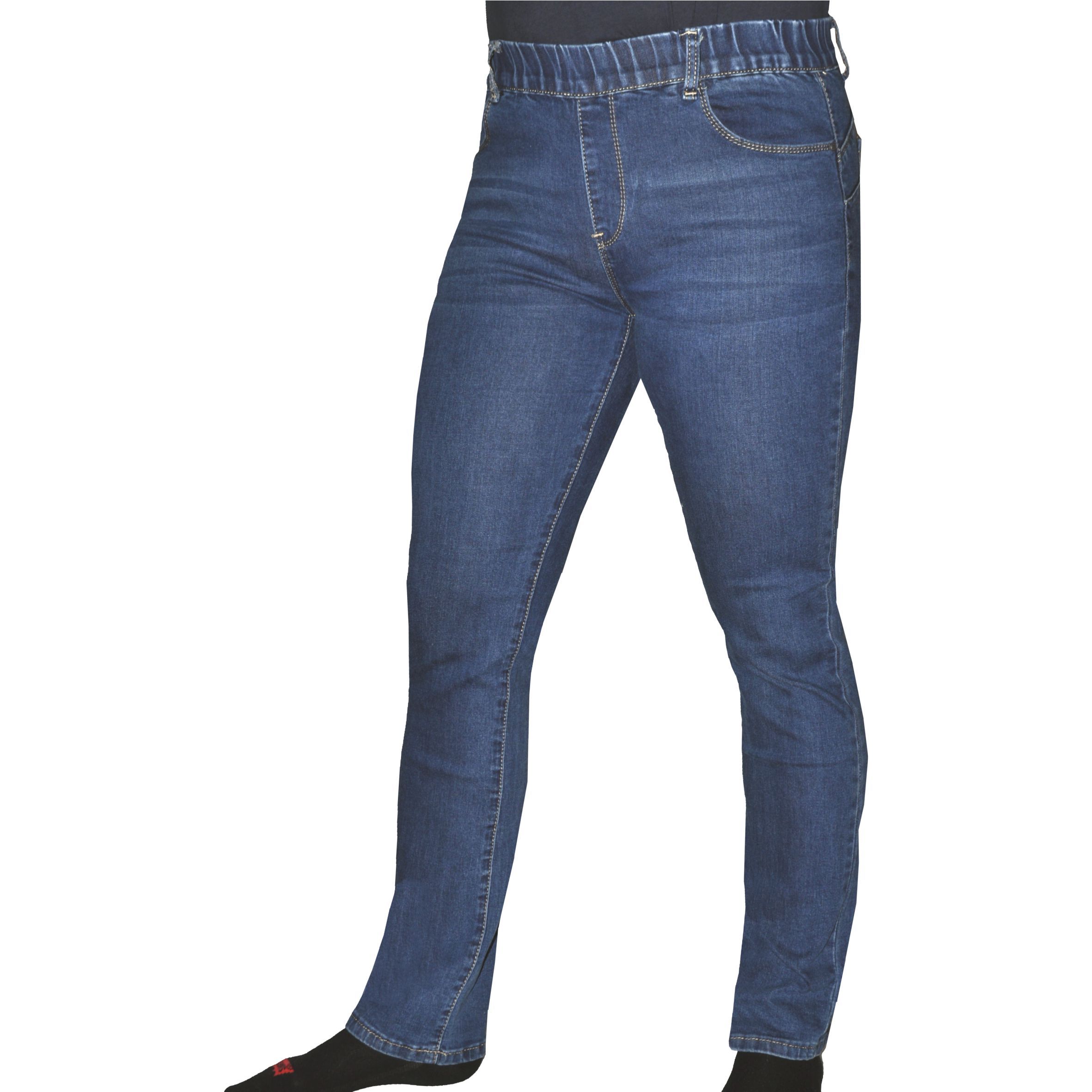 Különleges középkék árnyalatú körgumis derekú női farmernadrág.