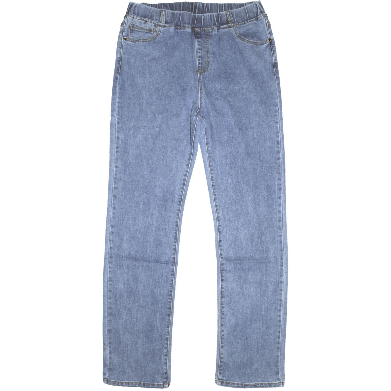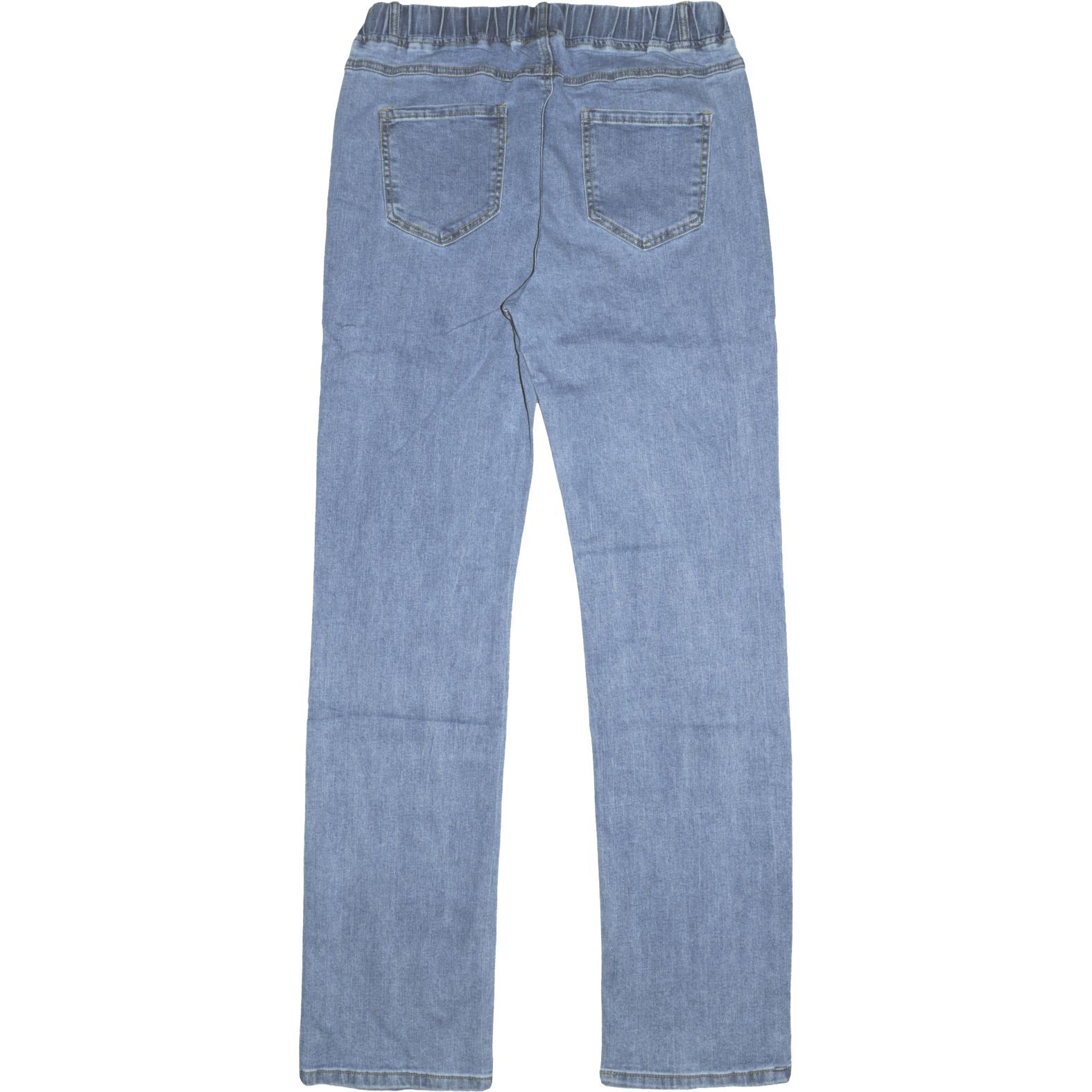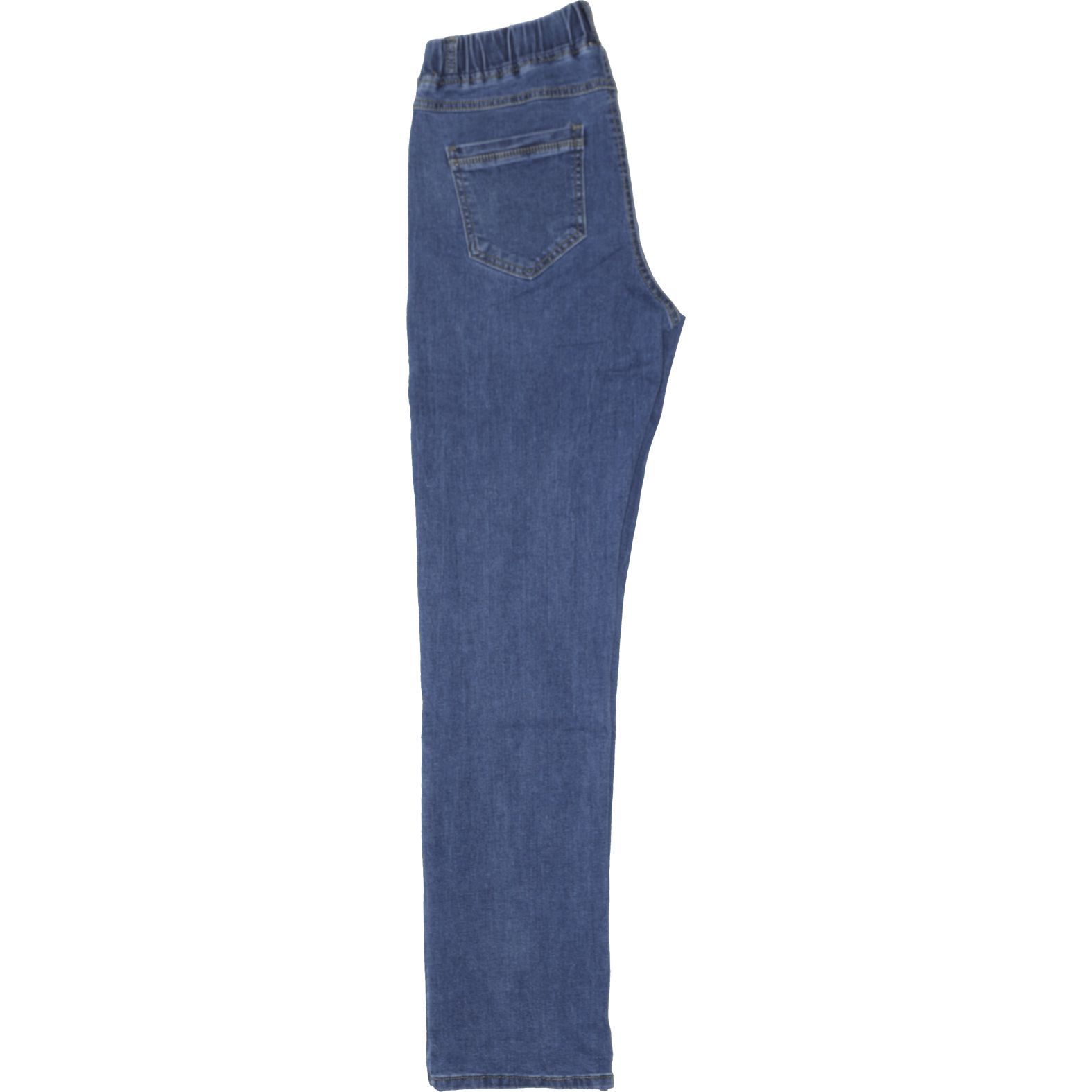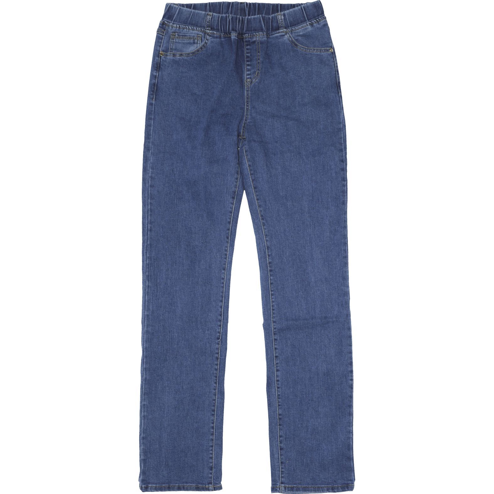 Hagyományos egyenes szárú gumis derekú női farmernadrág.