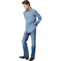 A Horizon Bootcut Jeans a nyugati stílus és a Wrangler farmerre jellemző modern funkcionalitás tökéletes keveréke. Közepesen emelkedő, szabályos combjával és térdtől enyhén kiszélesedő fazonjával ez a farmer az amerikai nyugat hangulatát hozza a ruhatárába. Az enyhén rugalmas anyag még nagyobb mozgásszabadságot biztosít, míg a 7 övhurok, 5 zseb és a jellegzetes Wrangler bőrtapasz időtlenül vonzó megjelenést biztosít.