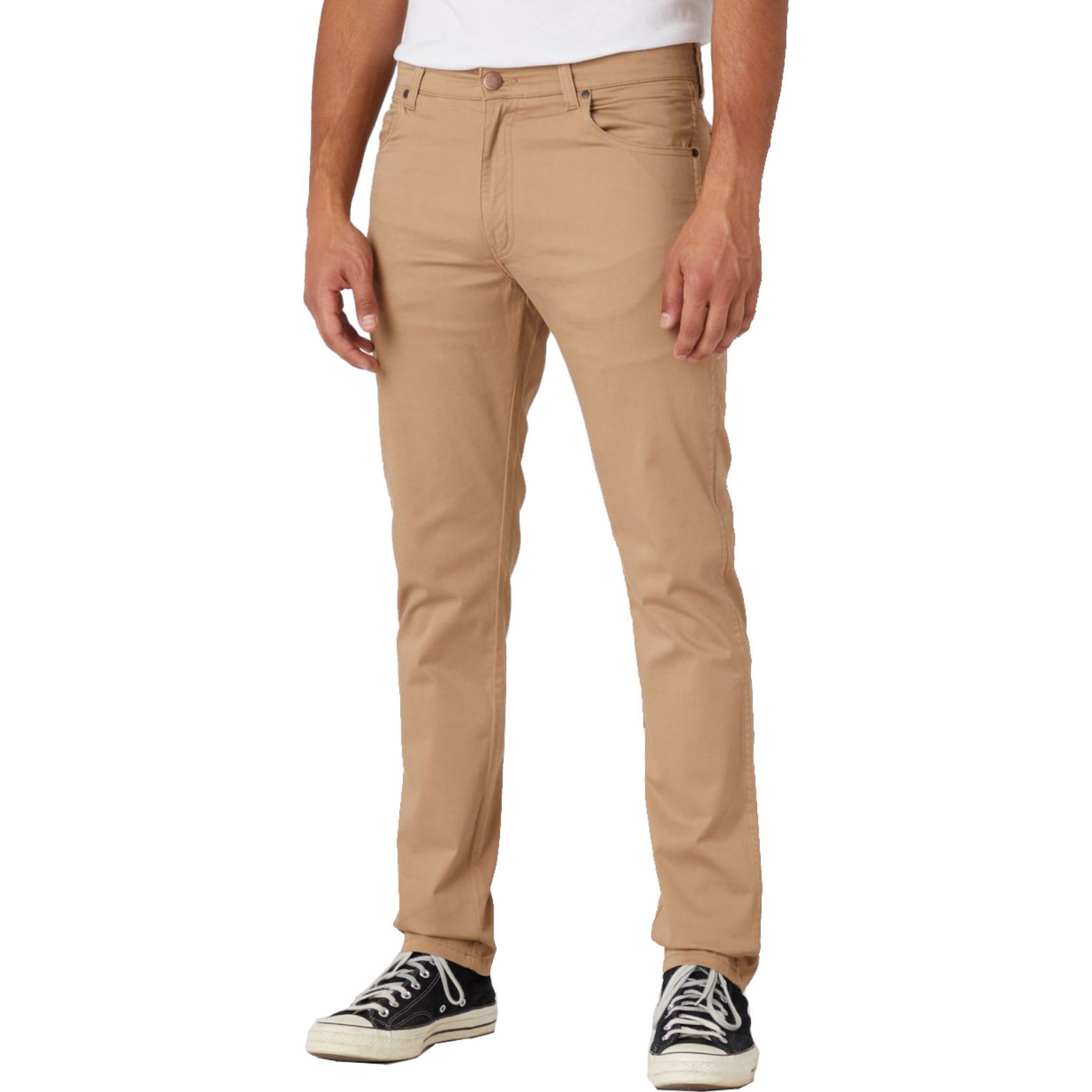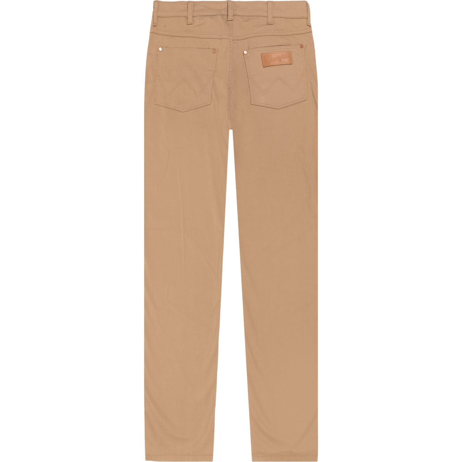 A letisztult Wrangler® Larston LB LightTwill Stretch Tigers Eye W18SEAC20 koptatásmentes avatással, színével megegyező tűzésekkel a védjeggyé vált "W" hátsózsebekkel, valamint az eredetiséget igazoló bőr logóval készült.
