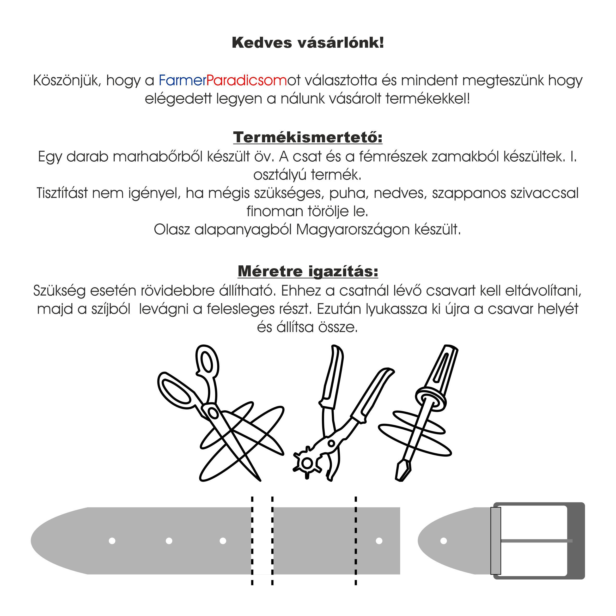 KÜLÖNLEGES AKCIÓ A FARMERPARADICSOM-BAN! Valódi bőrből készült hagyományos öv, minimalista stílusú, klasszikus csatt...