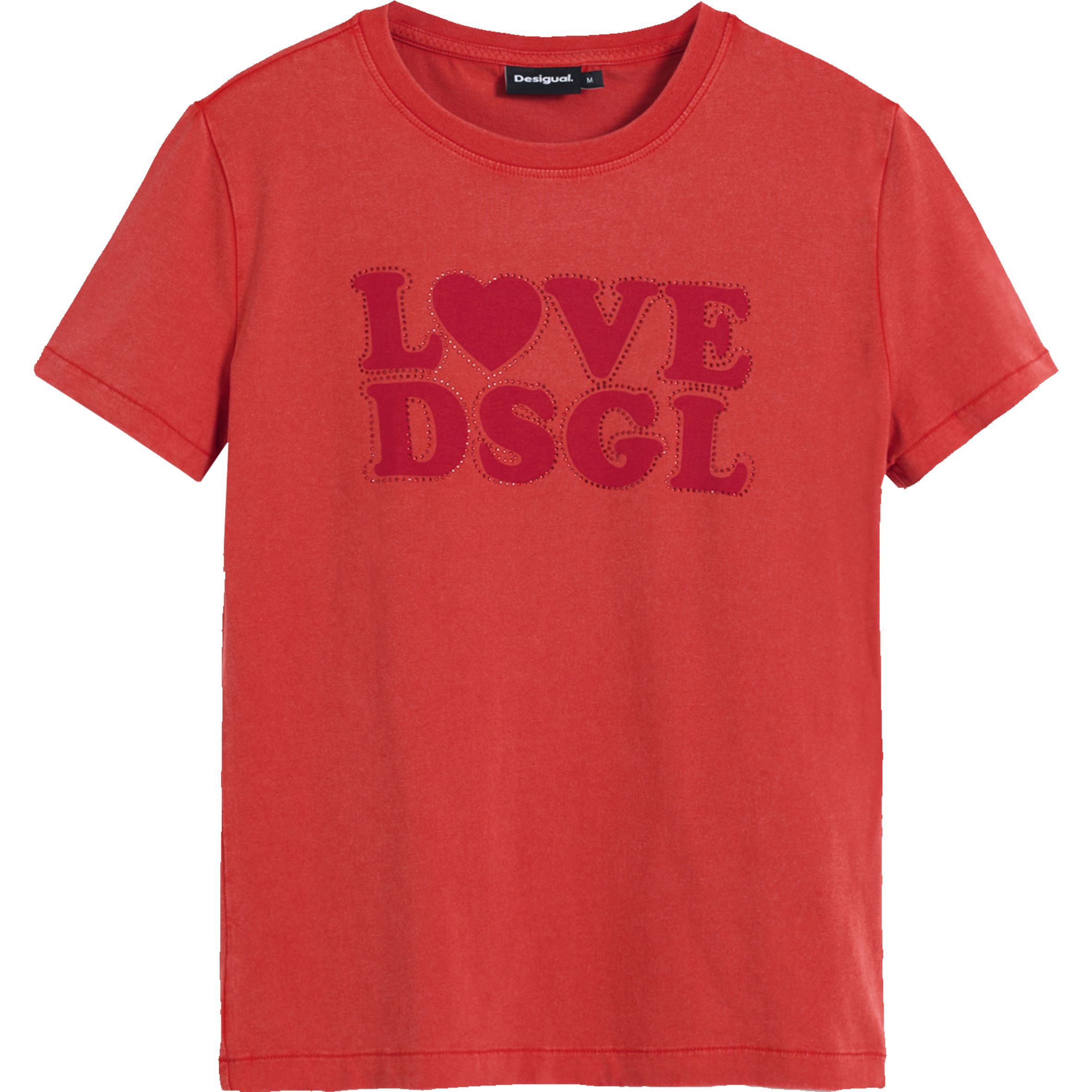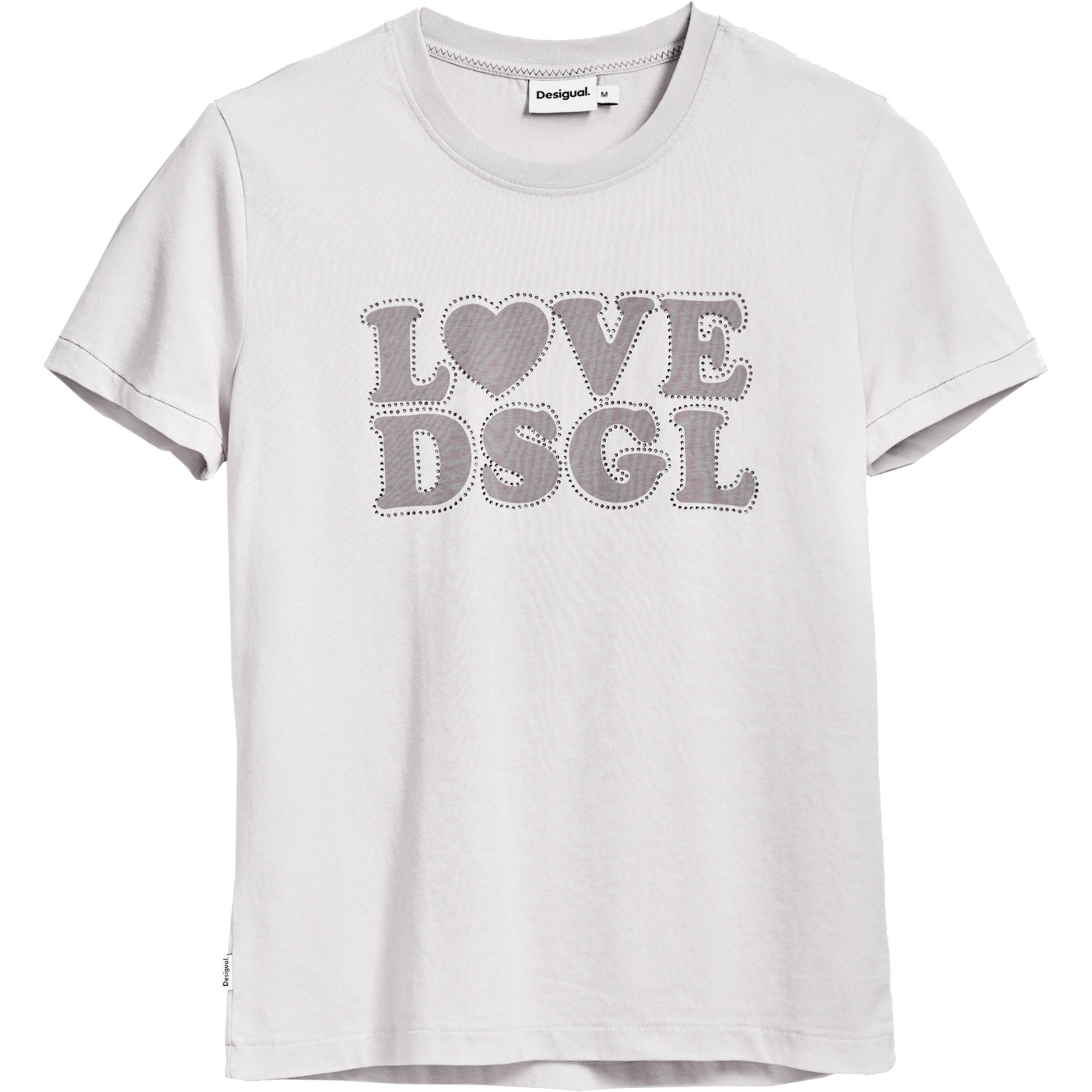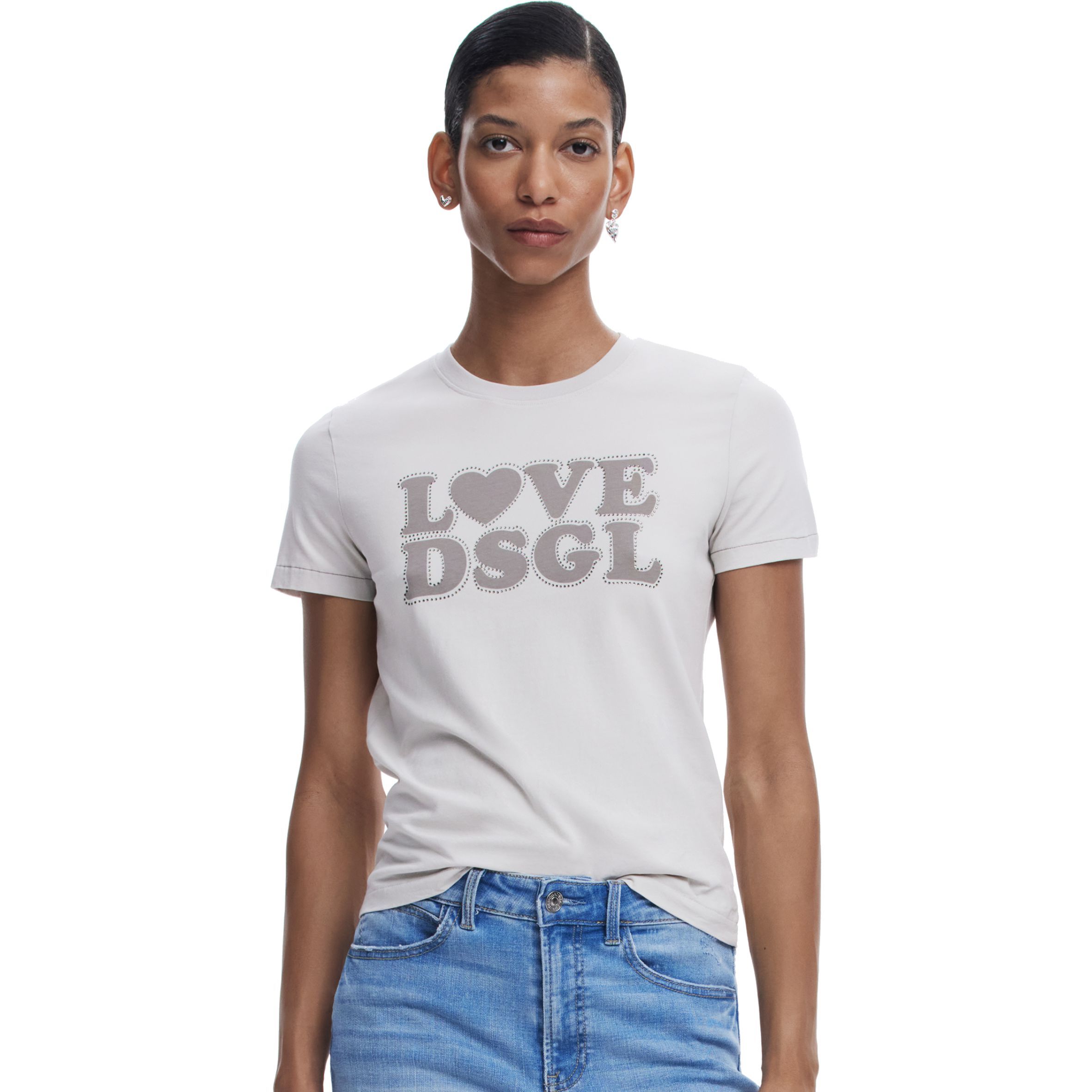 Rövid ujjú póló pamut anyagból, kerek nyakkal és "Love Desigual" felirat strasszkövekkel díszítve