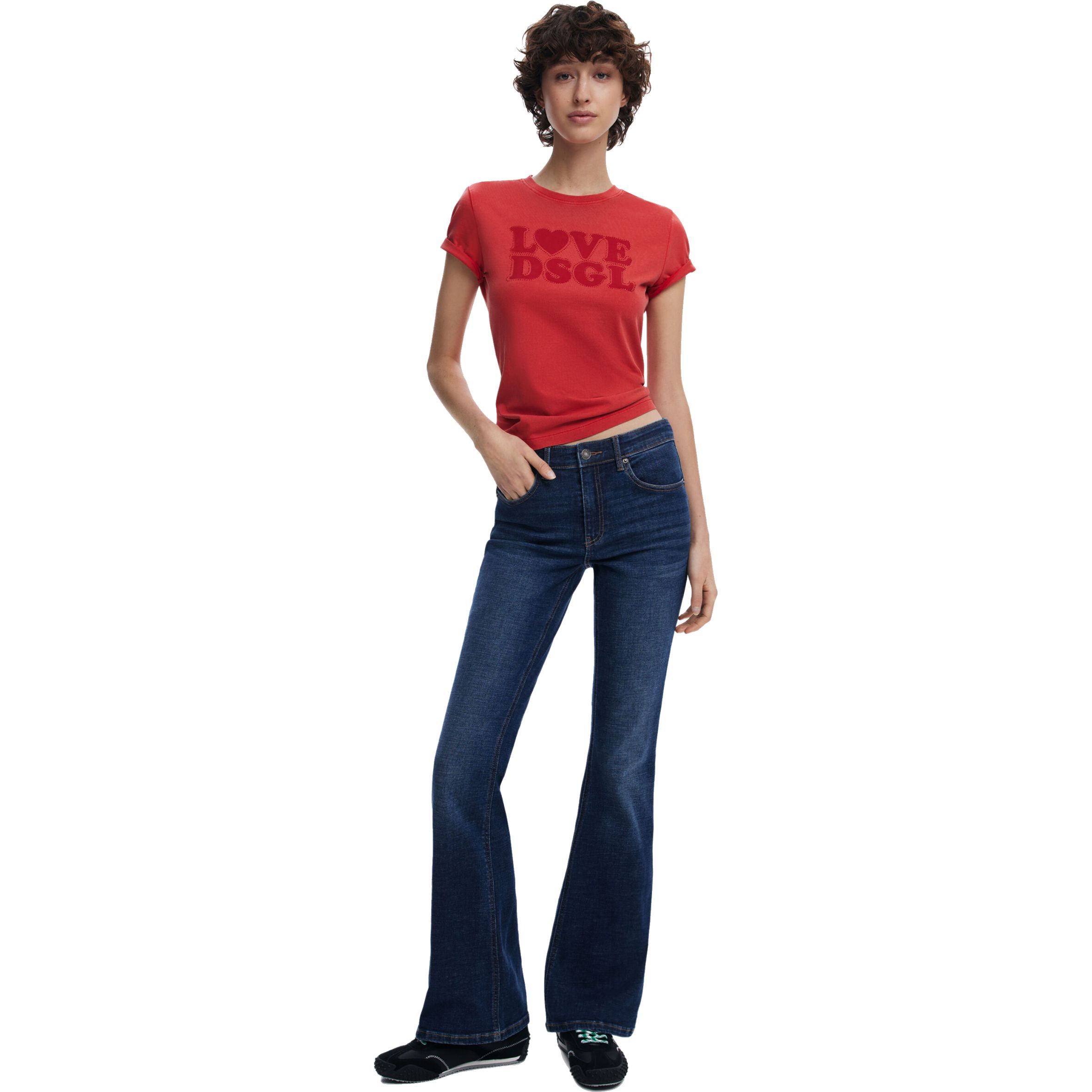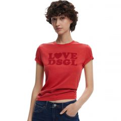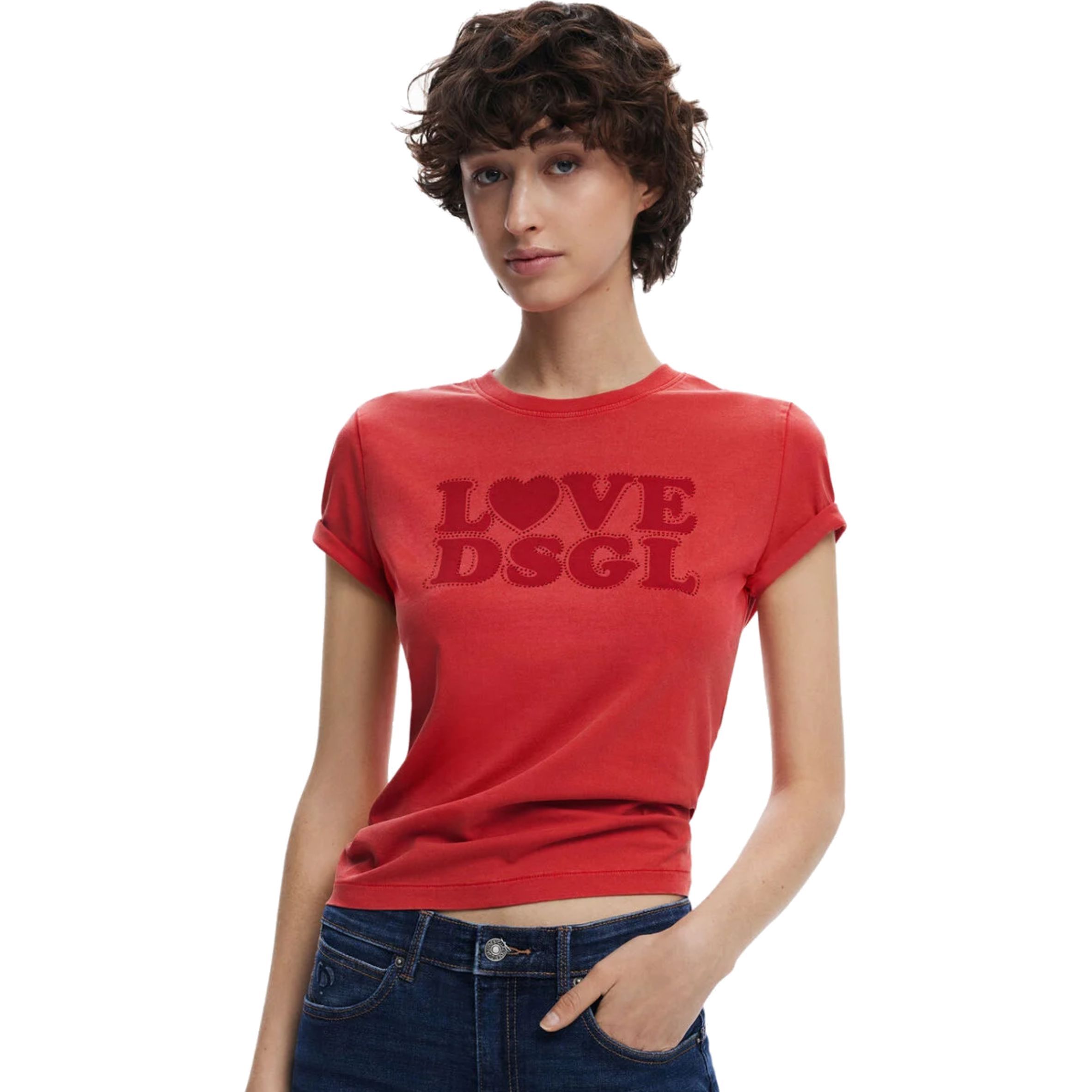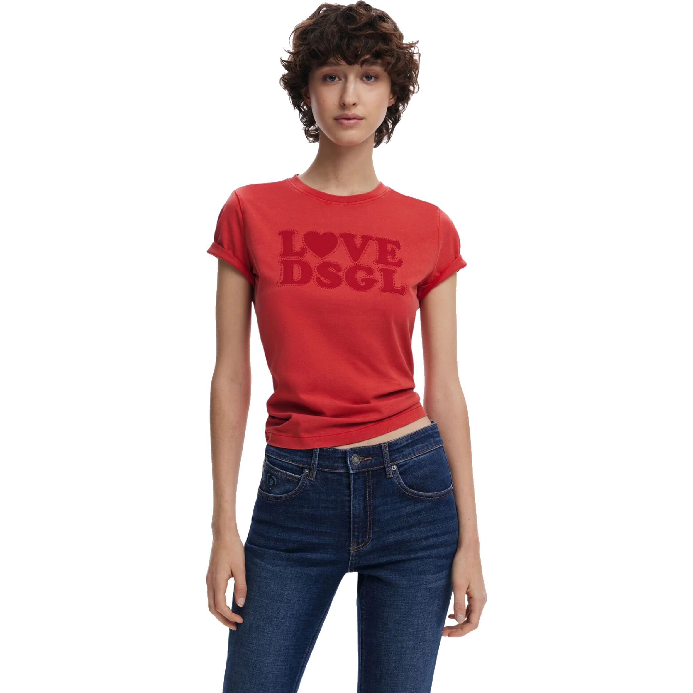 Rövid ujjú póló pamut anyagból, kerek nyakkal és "Love Desigual" felirat strasszkövekkel díszítve