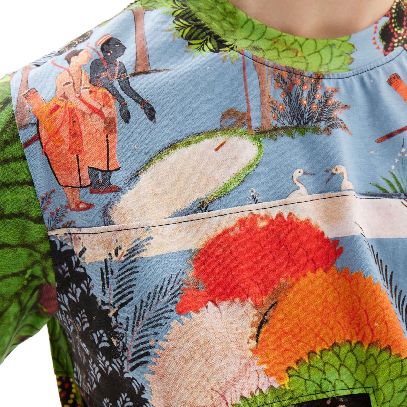 Fazon: Rövid ujjú póló indiai motívumokkal díszített mintákból álló patchworkkel.