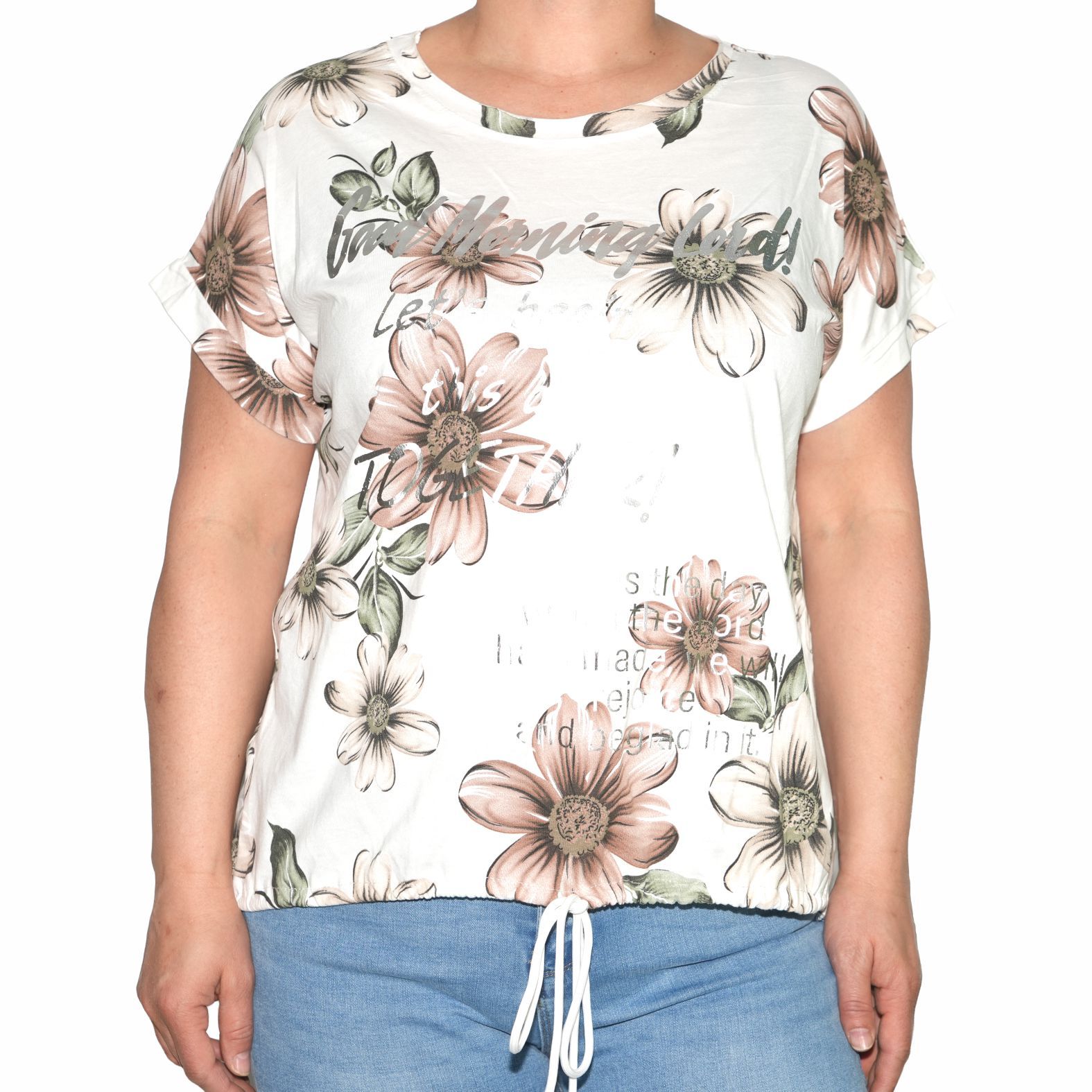 - Termék neve: 1172 Good Morning barna virágmintás női póló