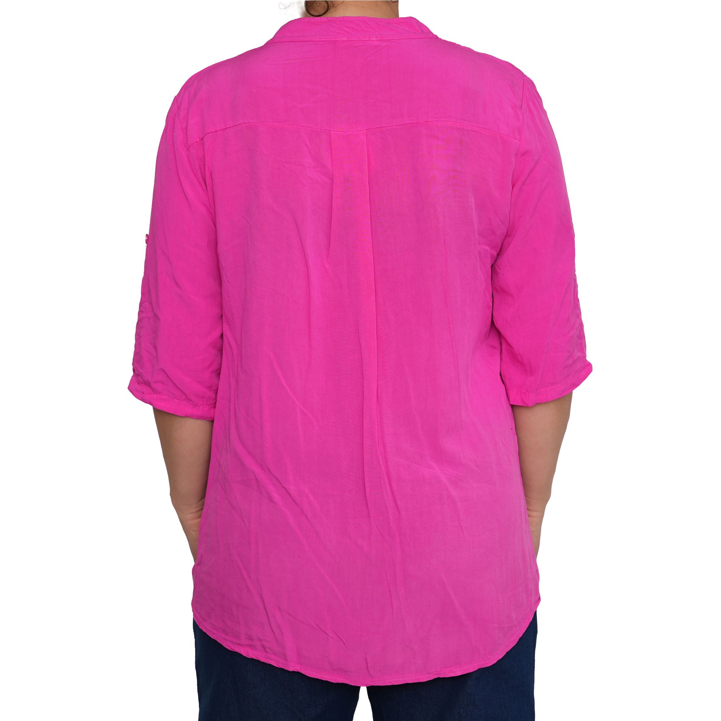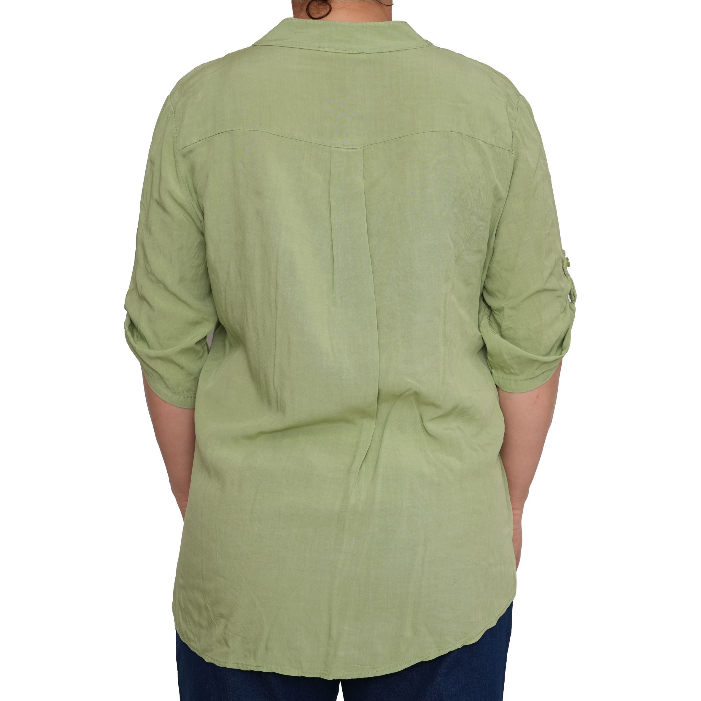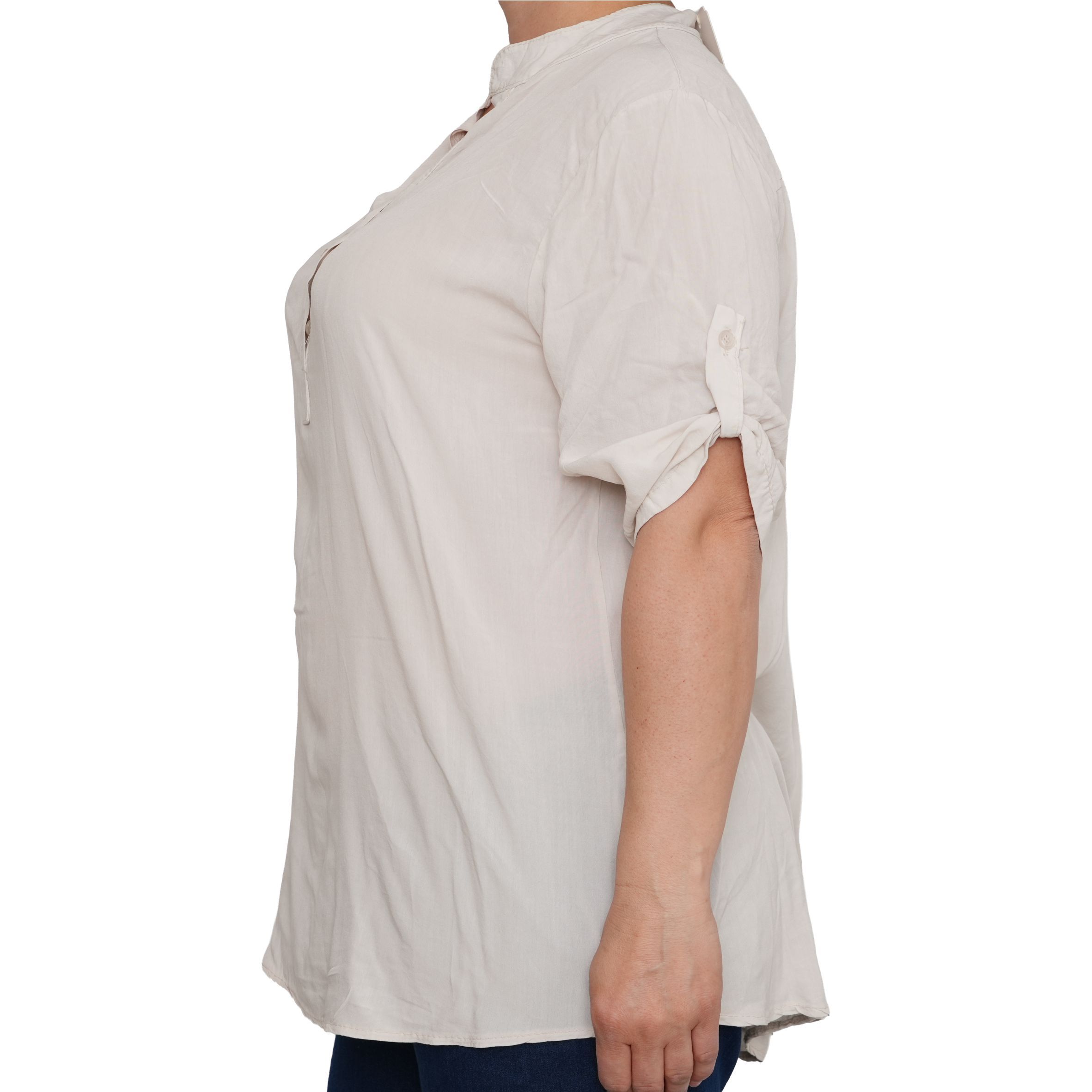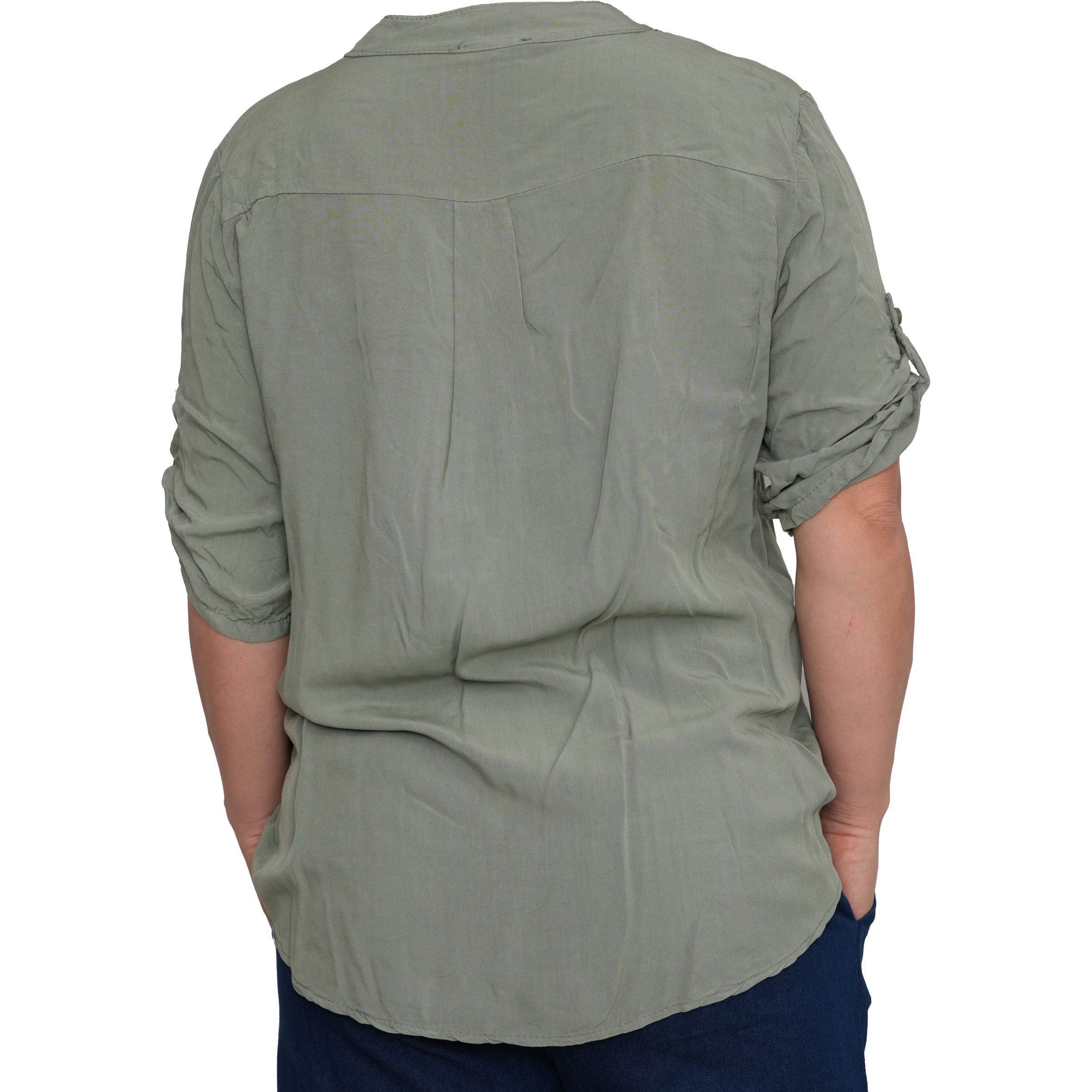 Egyszerű, mégis nőies kialakítását a gombos nyakrész és a visszahajtható, gombbal rögzíthető ujjak teszik praktikussá és stílusossá. Lazább szabásvonala szépen simul a testre, miközben szabad mozgást ad.