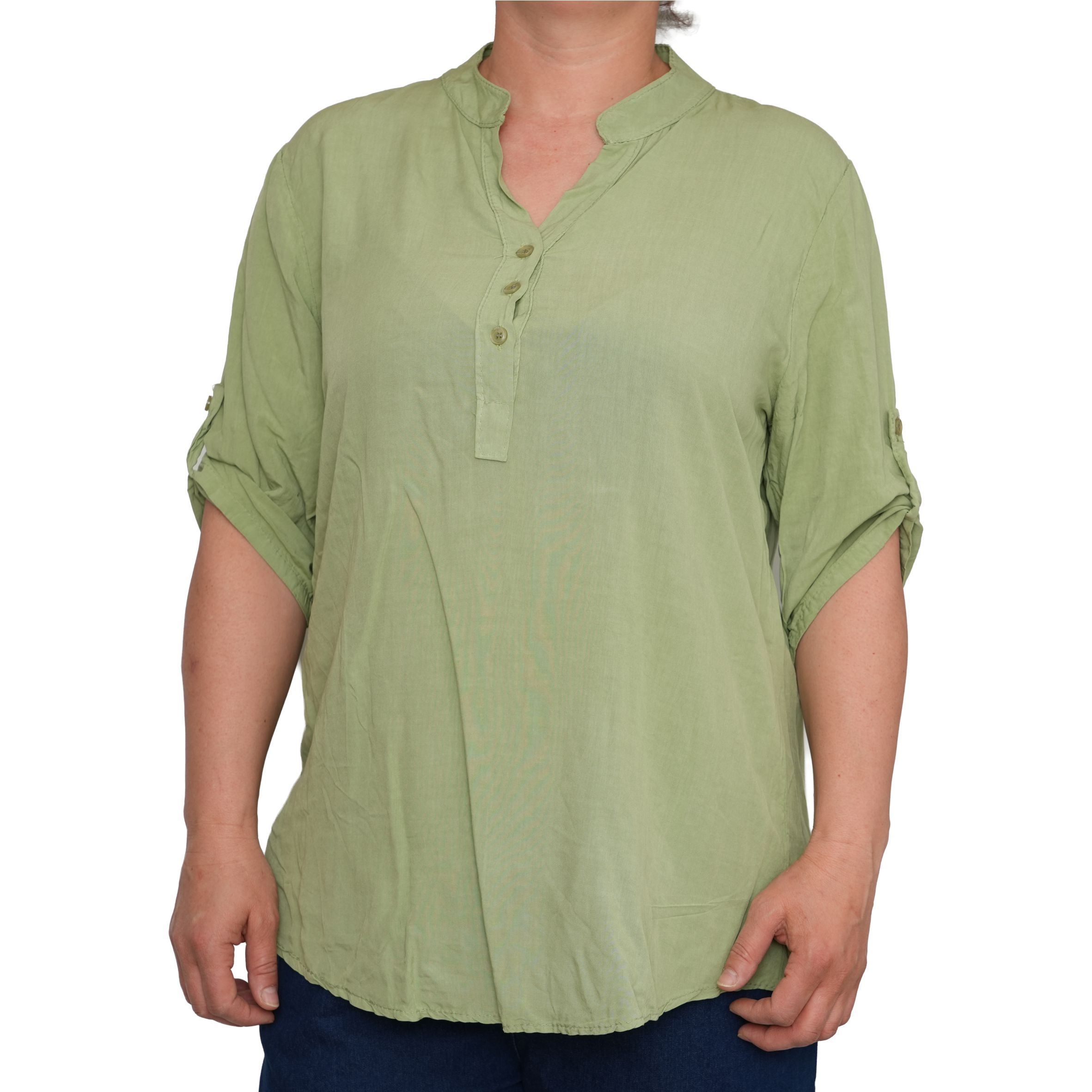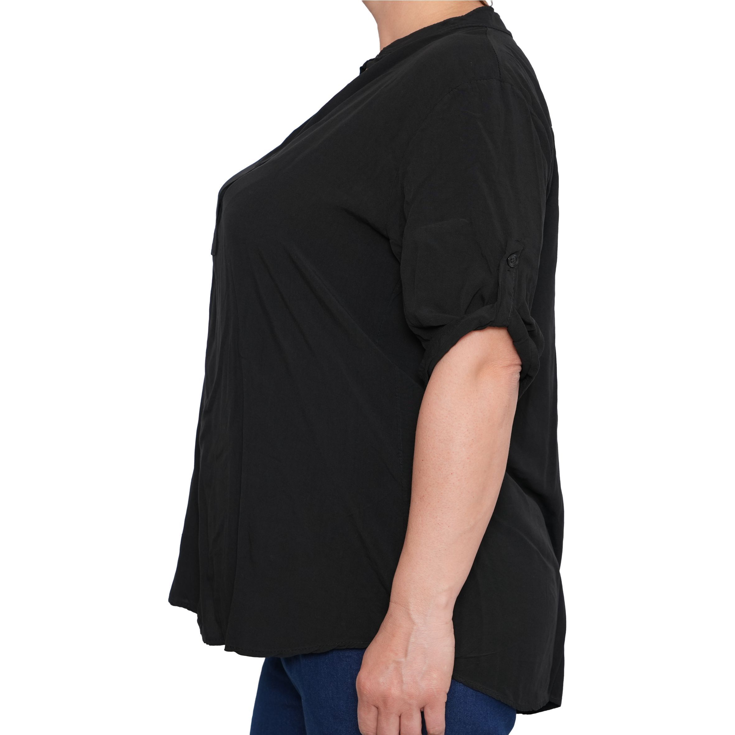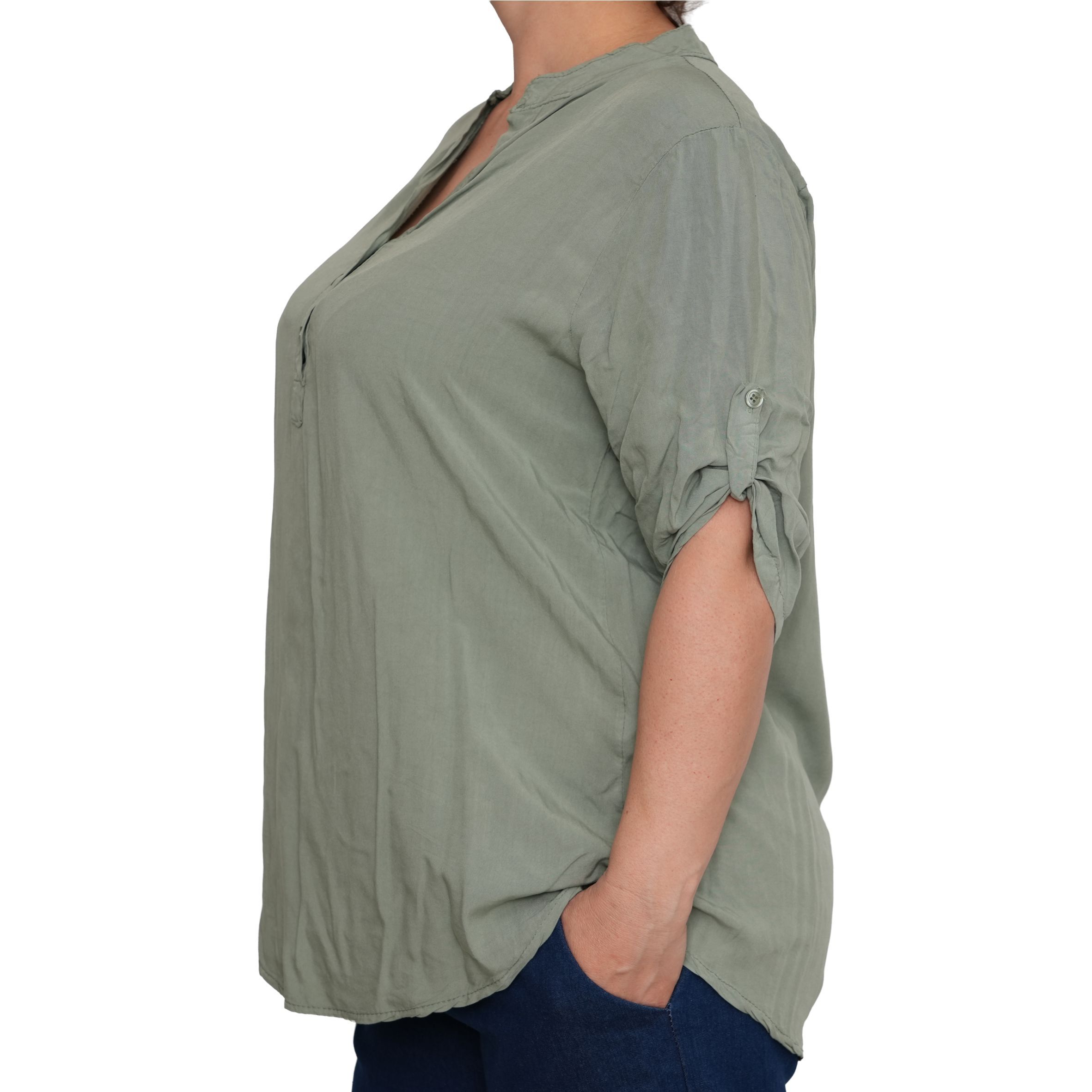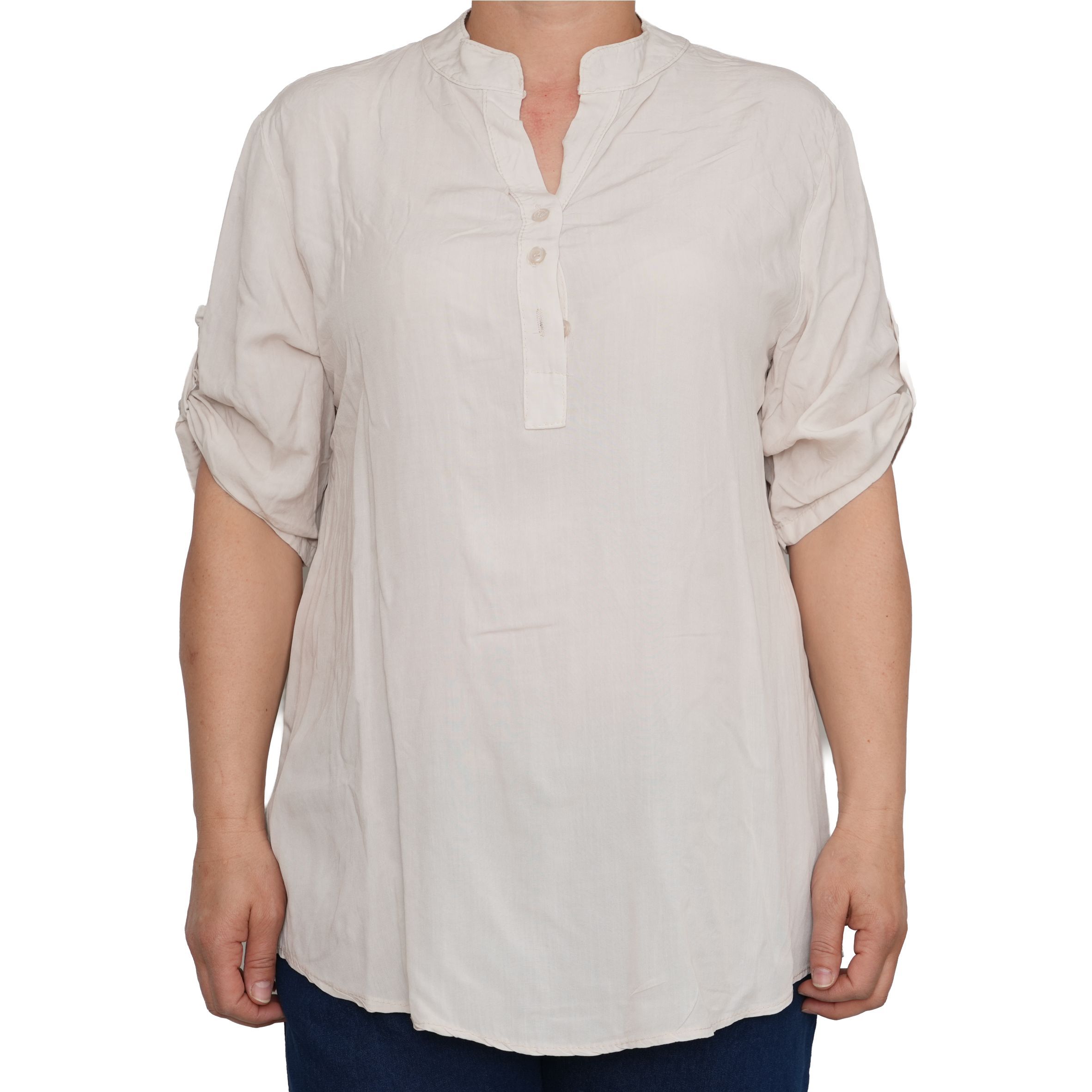 Egyszerű, mégis nőies kialakítását a gombos nyakrész és a visszahajtható, gombbal rögzíthető ujjak teszik praktikussá és stílusossá. Lazább szabásvonala szépen simul a testre, miközben szabad mozgást ad.