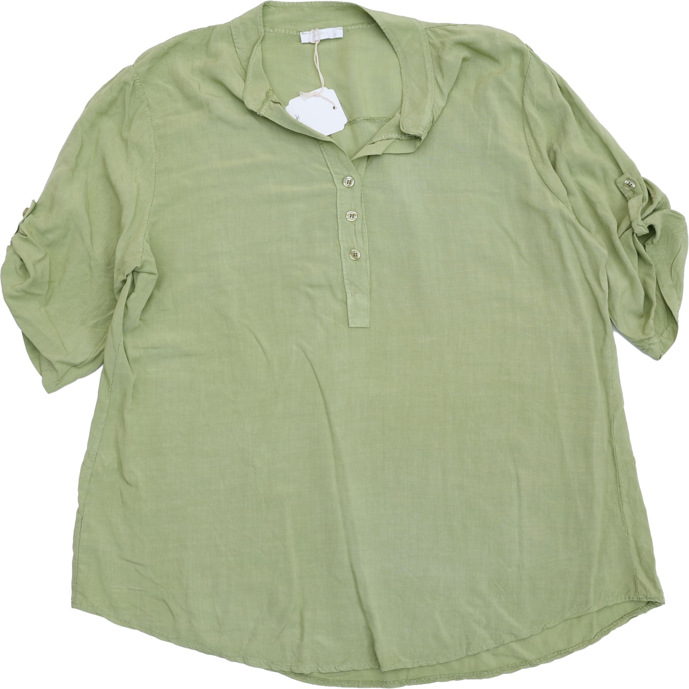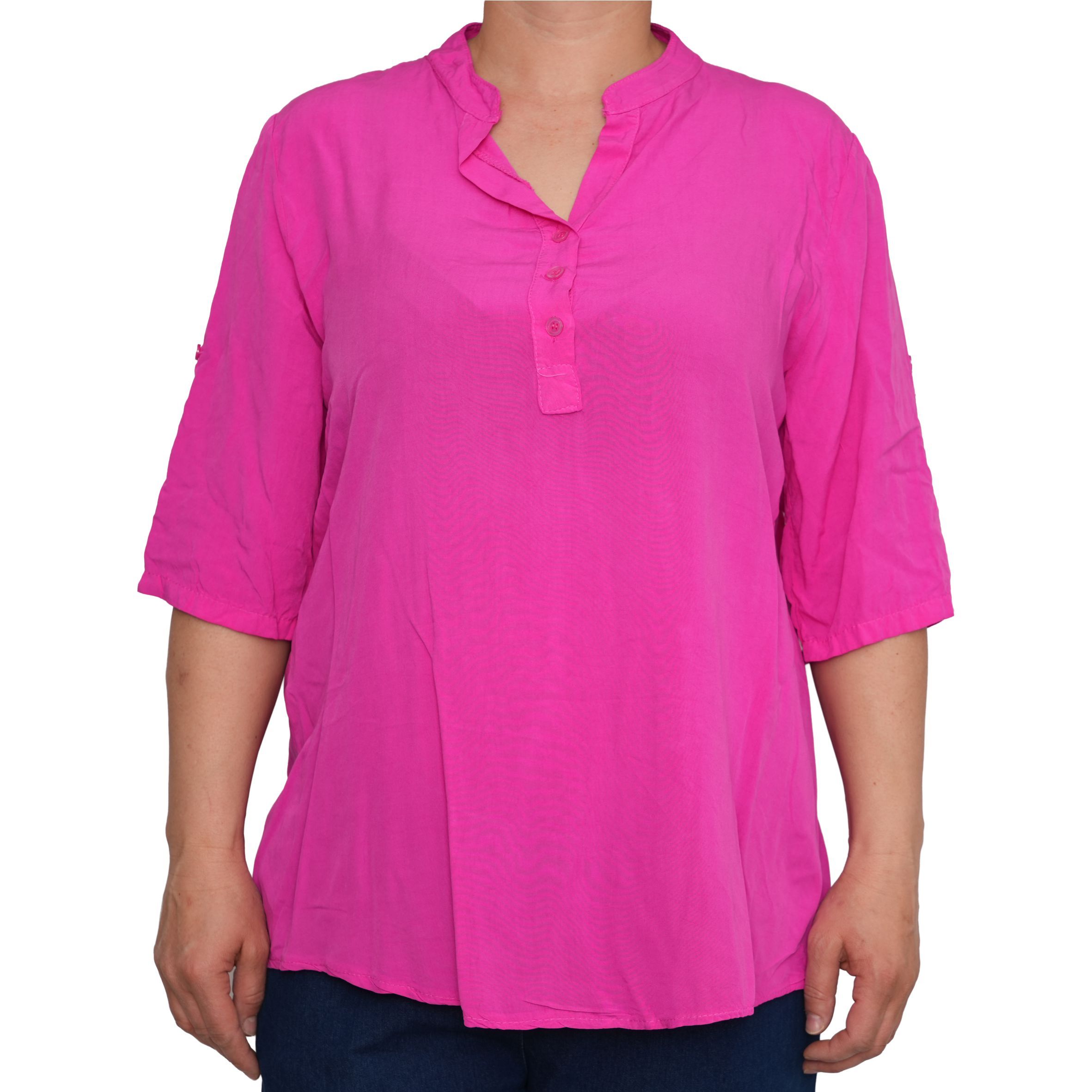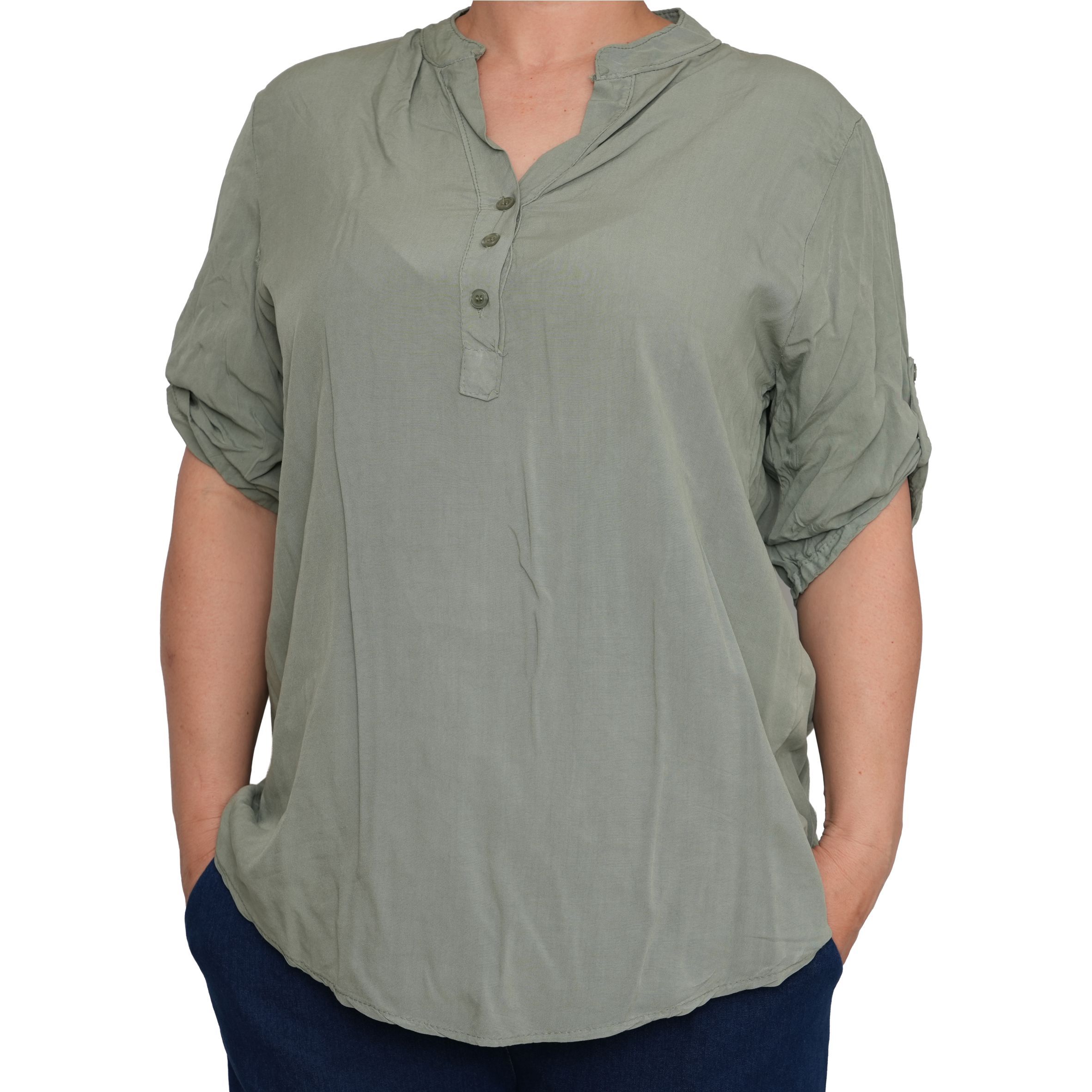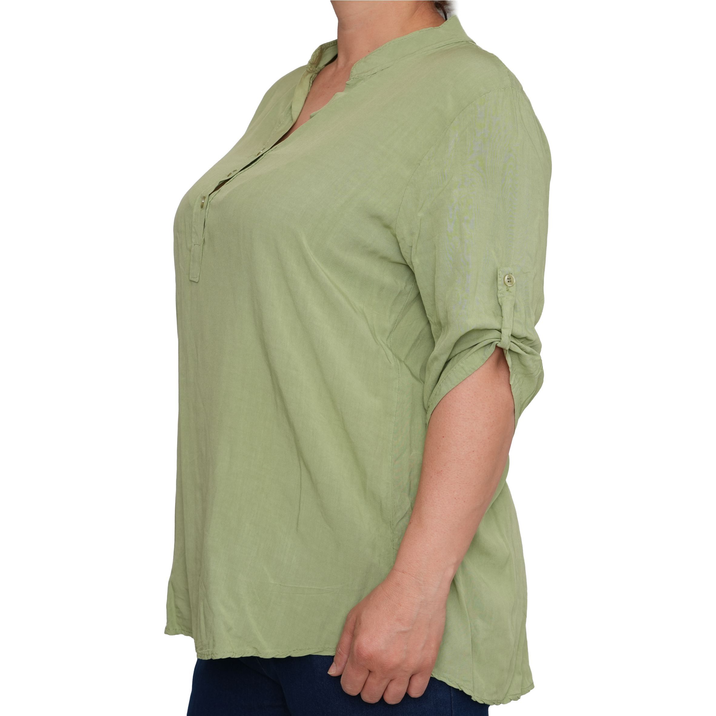 Egyszerű, mégis nőies kialakítását a gombos nyakrész és a visszahajtható, gombbal rögzíthető ujjak teszik praktikussá és stílusossá. Lazább szabásvonala szépen simul a testre, miközben szabad mozgást ad.