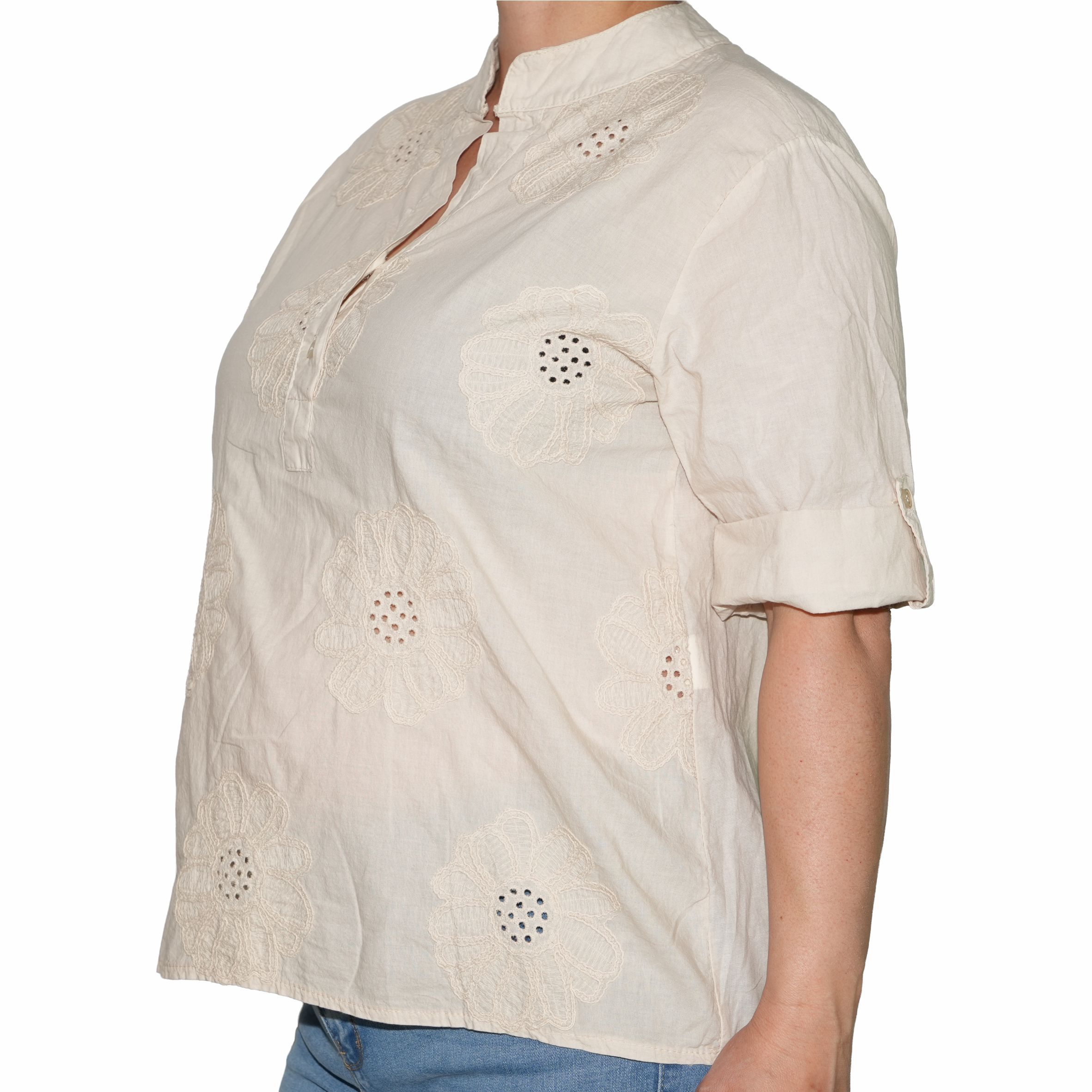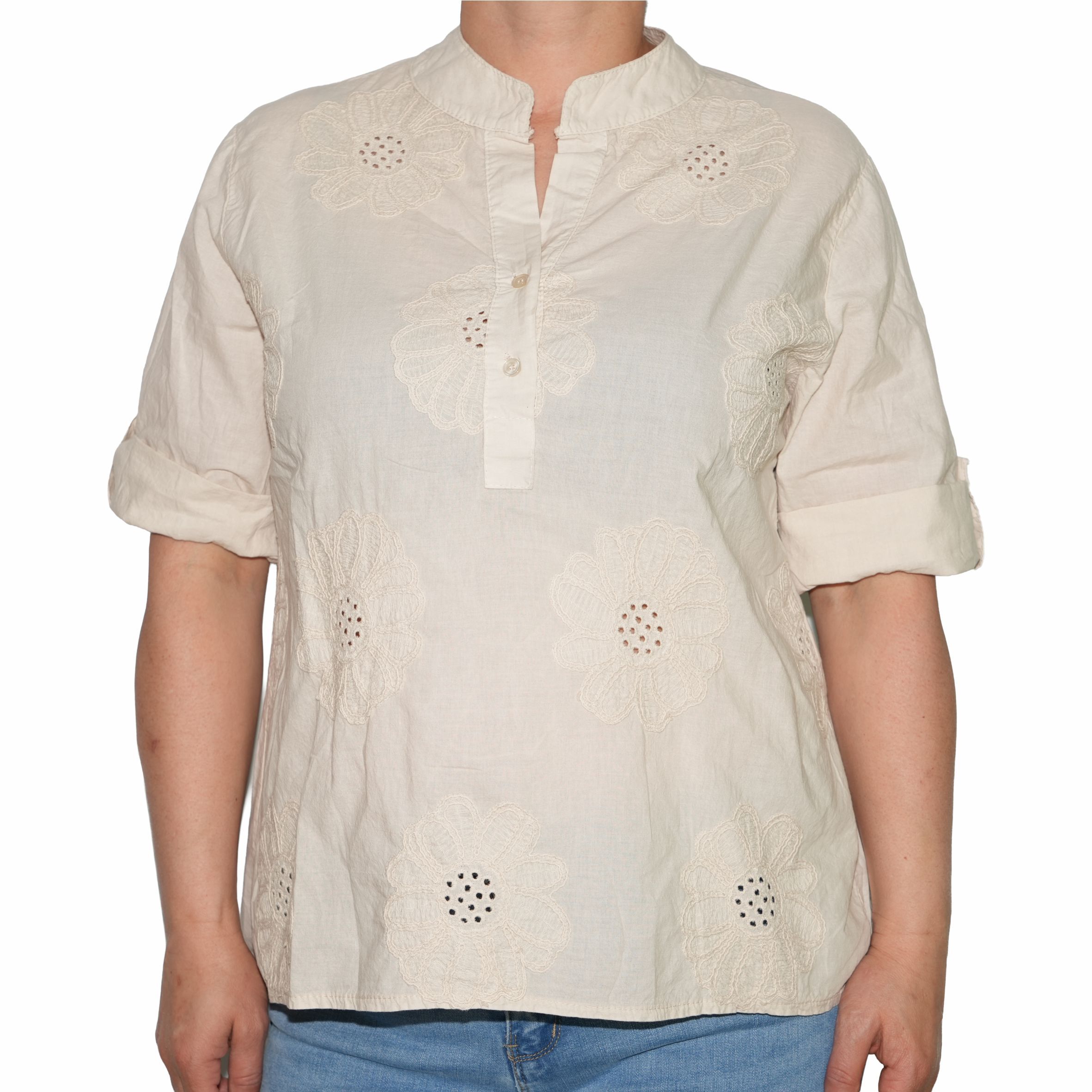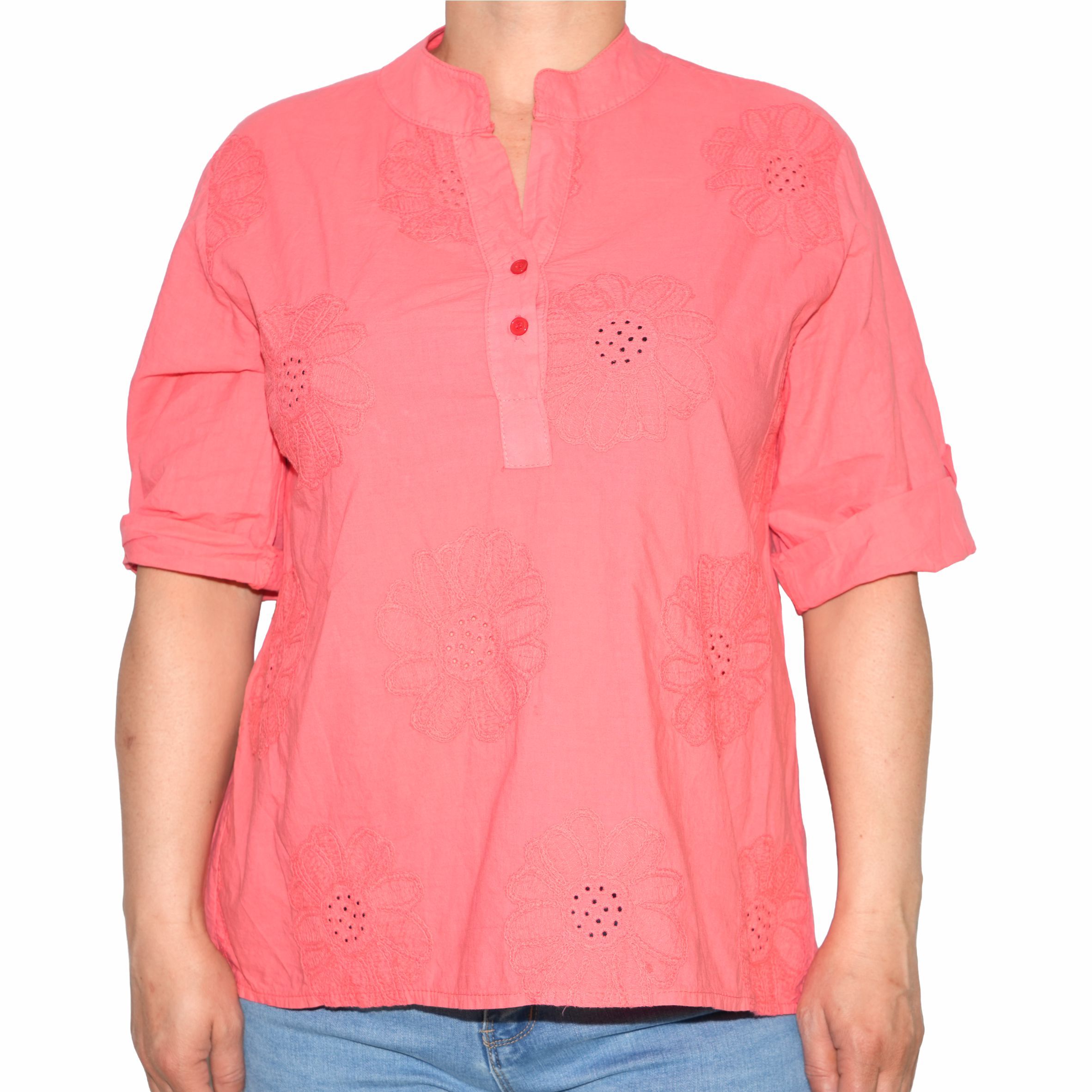 - Termék neve: 4014 Virágos-hímzett pamutnői póló