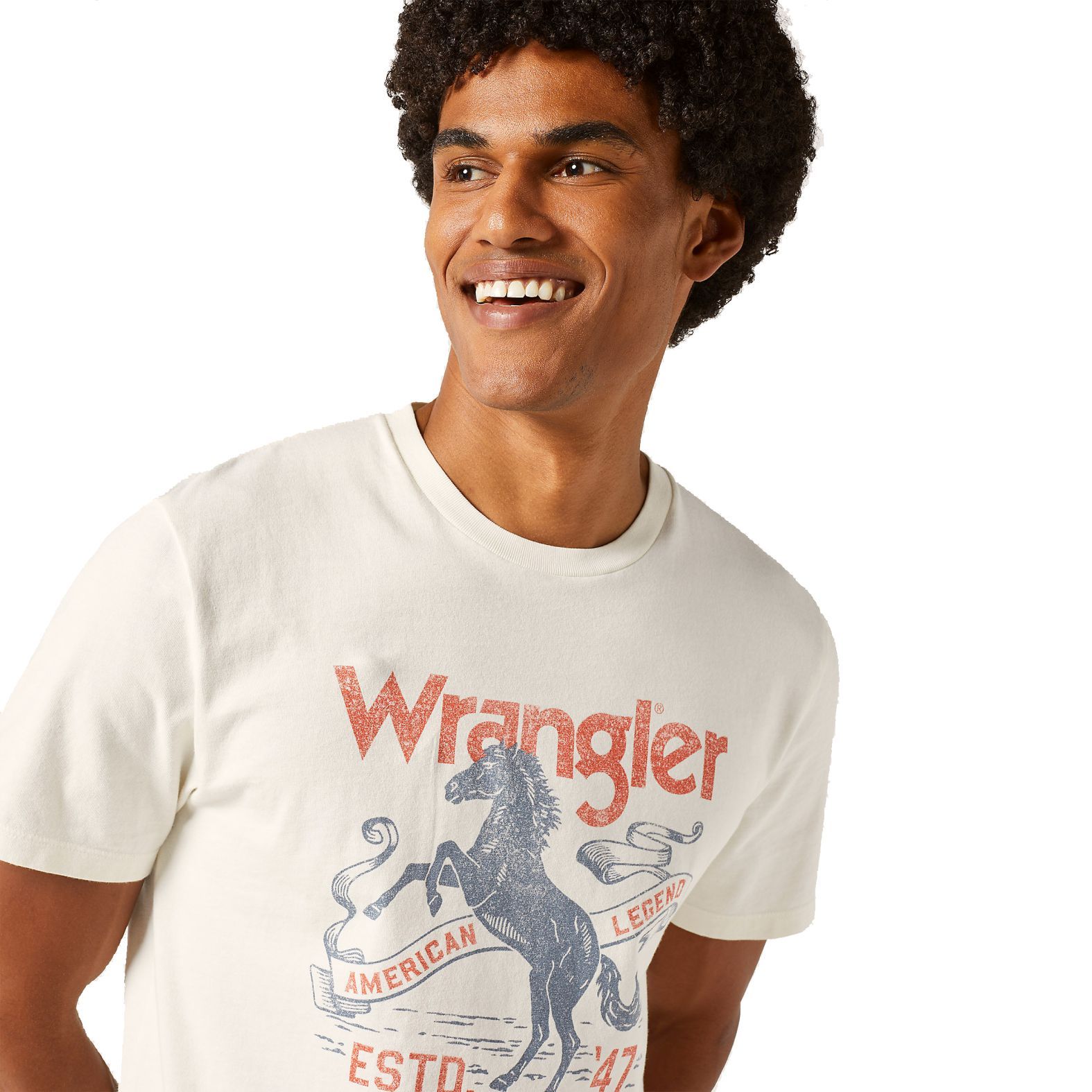 A Wrangler® Americana Tee Worn White 112350722 natúr pamut (tört fehér) alapszínű.