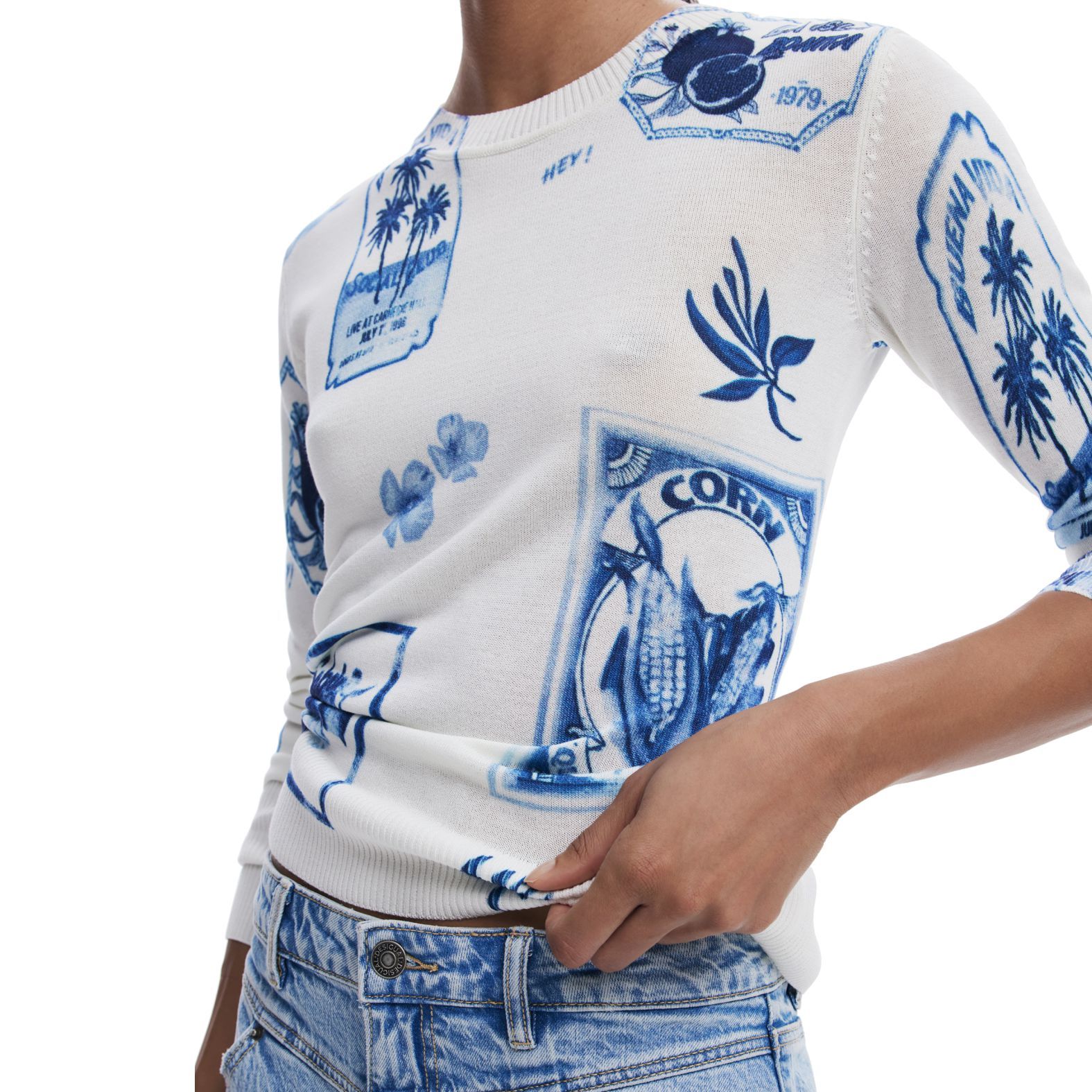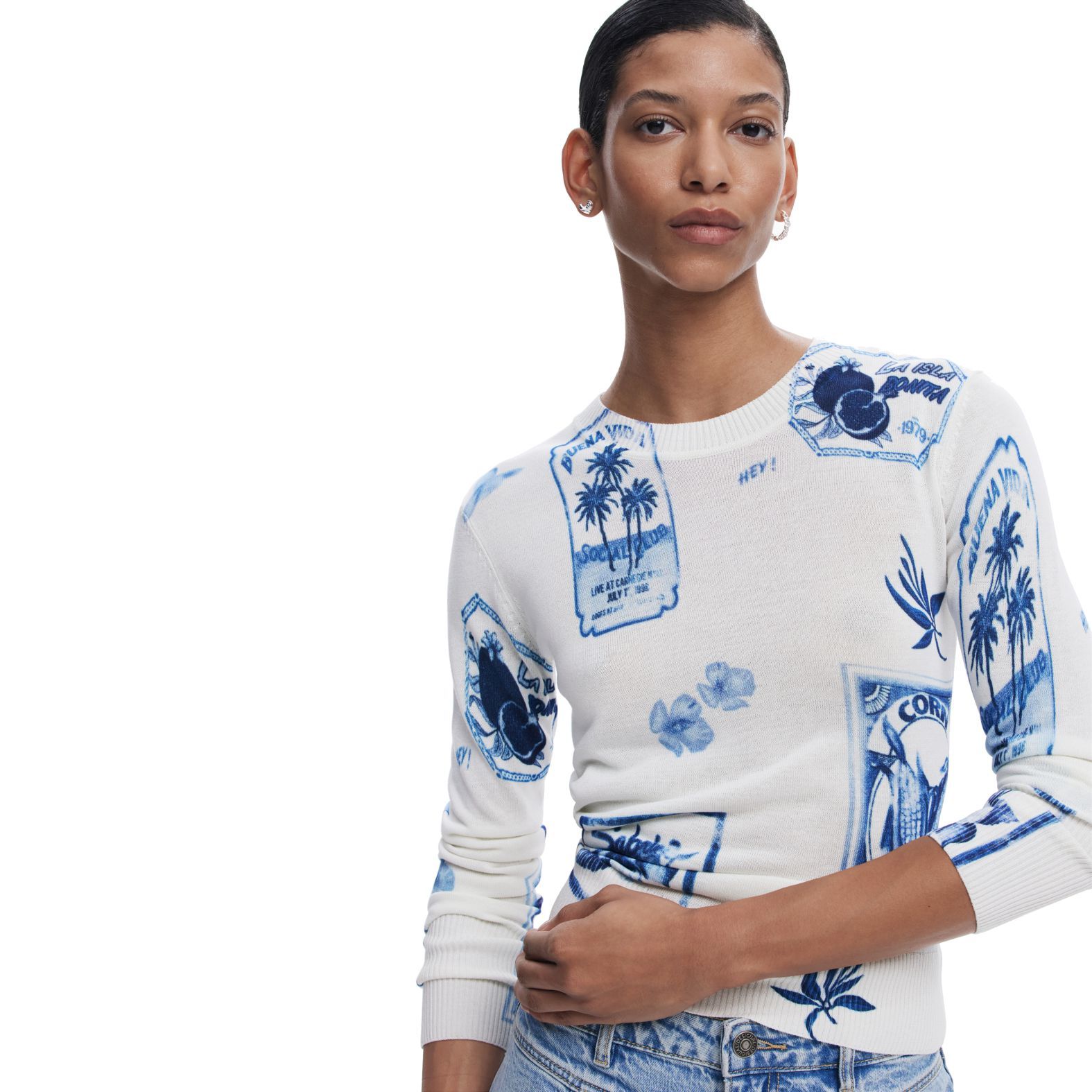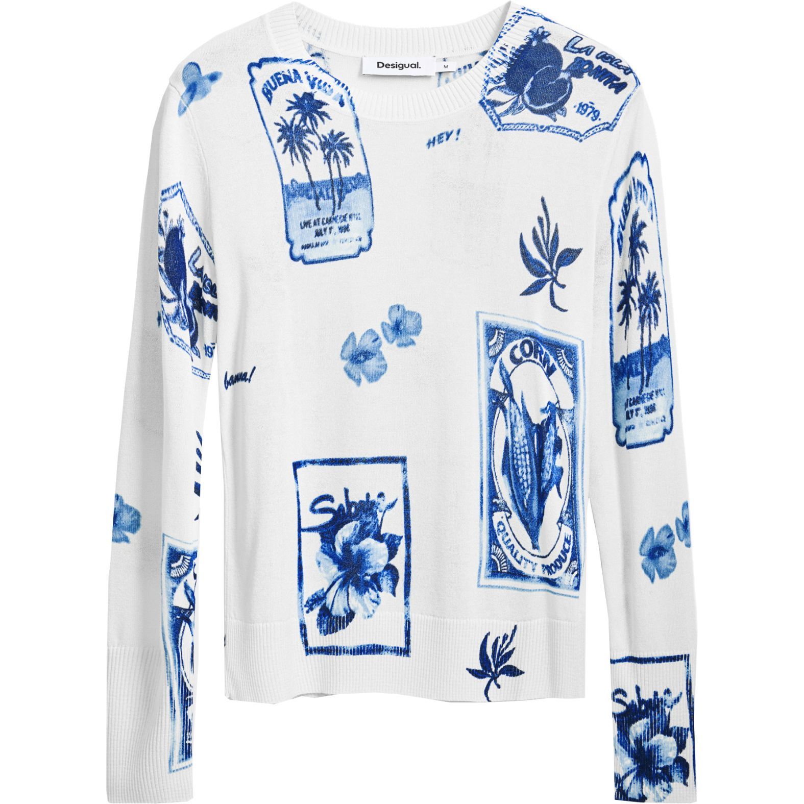 Desigual. Tropical Stamps Sweater Blue 25SWJF32