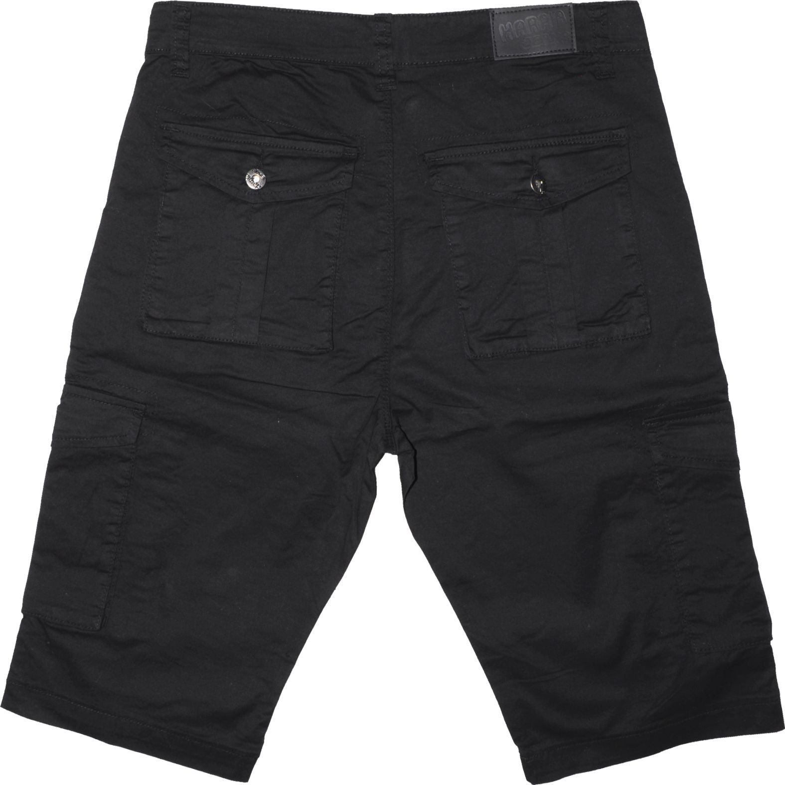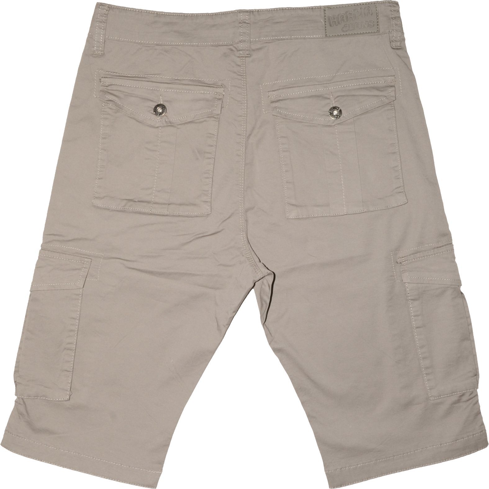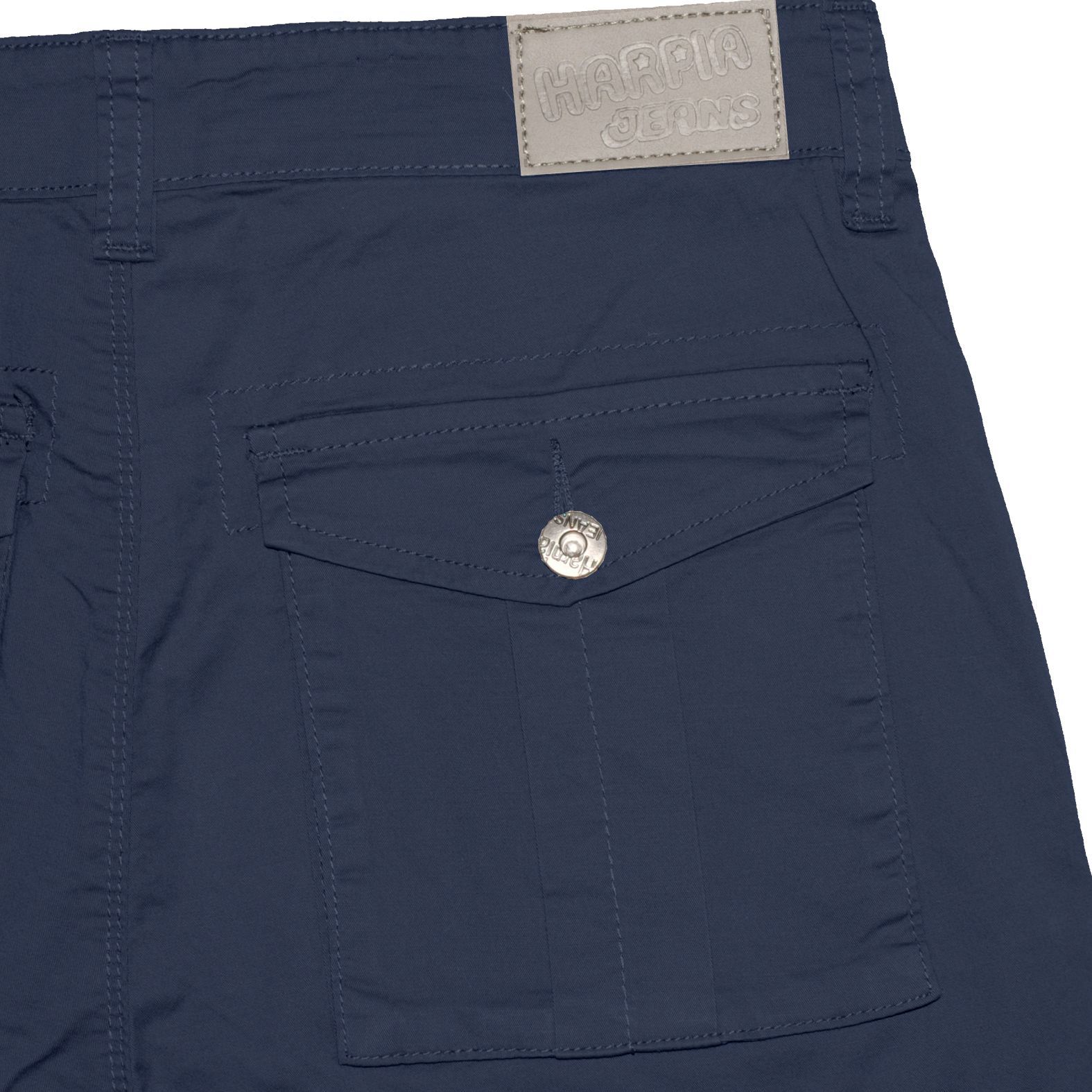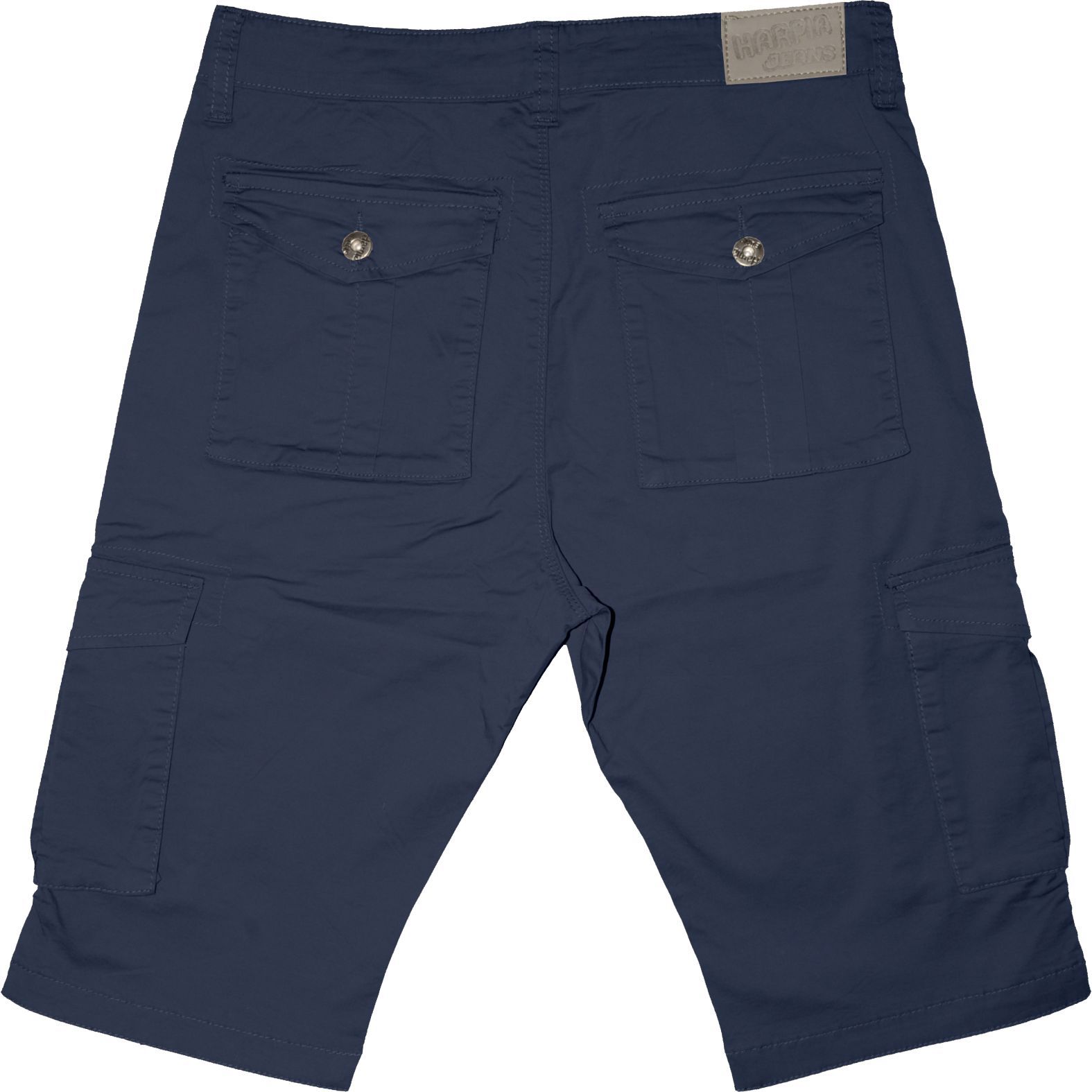 Vékony, sztreccs, kevert szálas alapanyagból készült oldalzsebes farmer rövidnadrág.