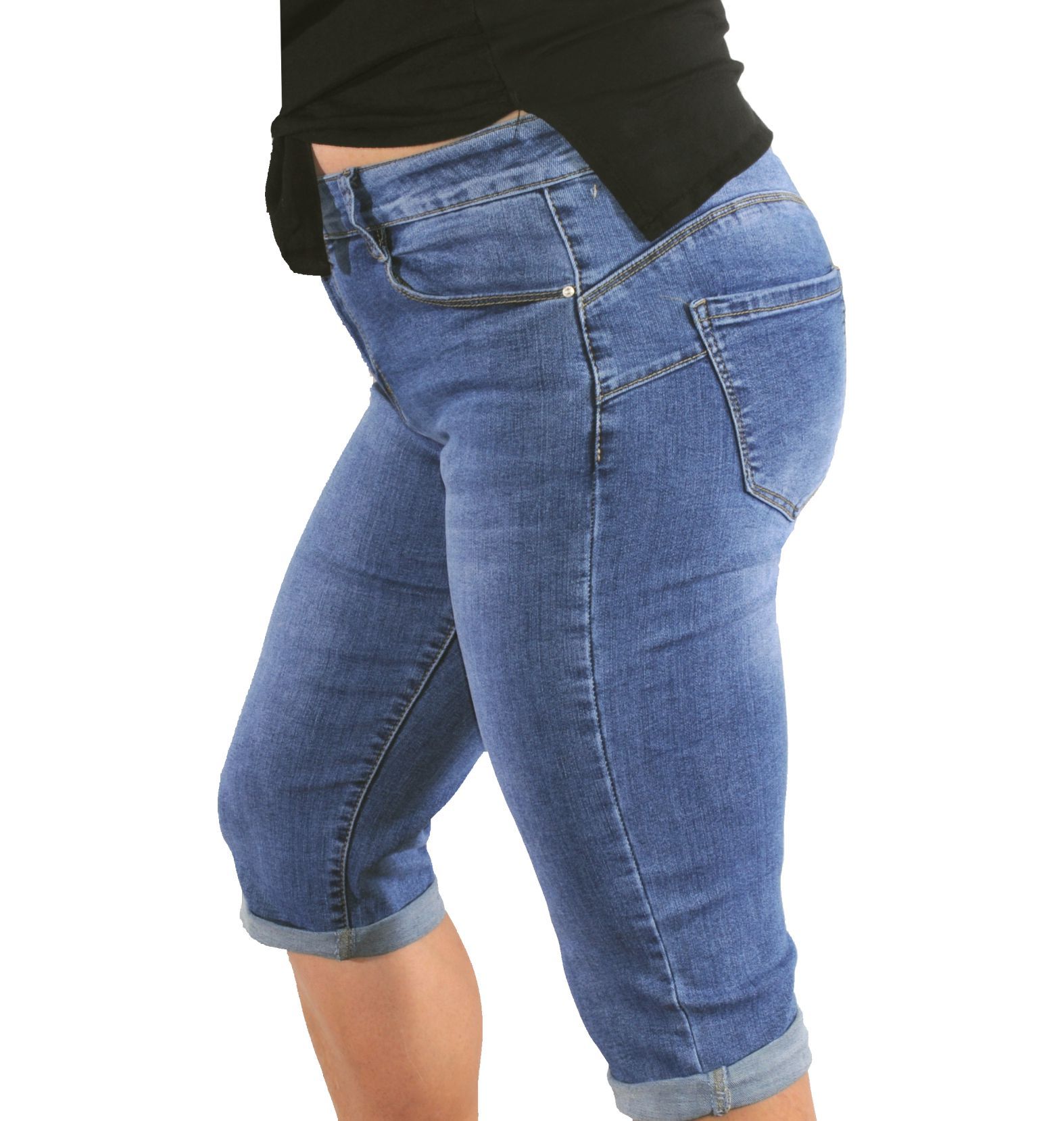 Fedezd fel a "popsiemelős" kialakítás előnyeit ebben a trendi női farmer bermudanadrágban.
