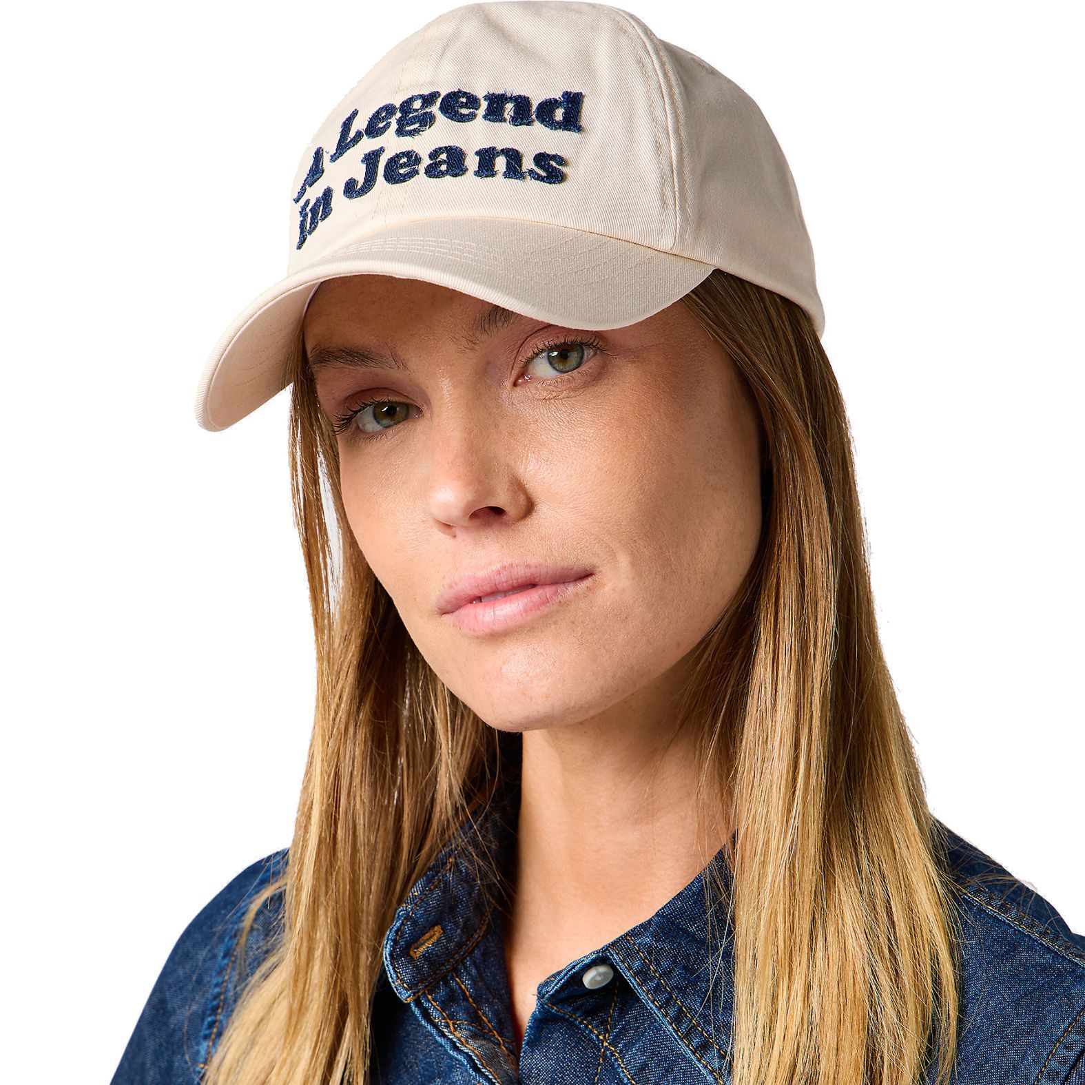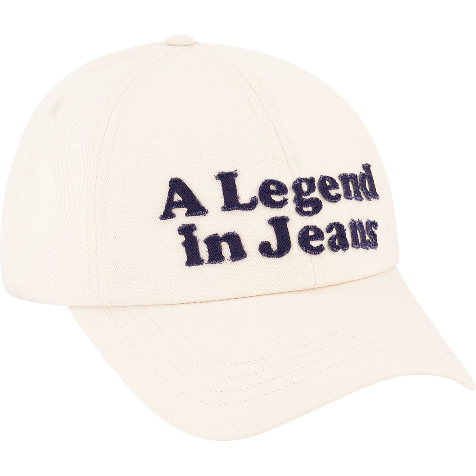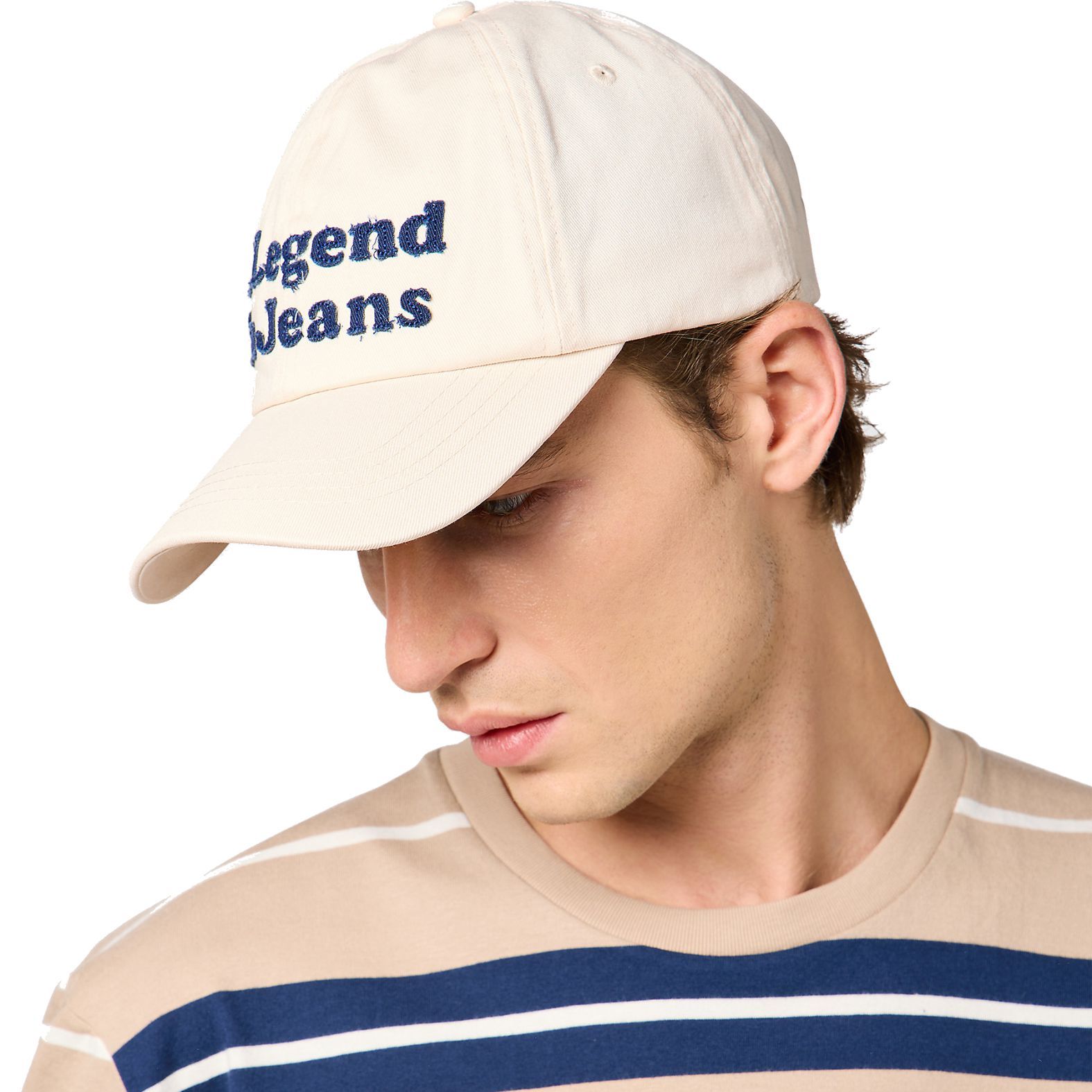 Az avató mosással létrehozott dizájnos törtfehér felülettel, varrott és a vágott "Egy legenda farmerben" szlogennel az elején.